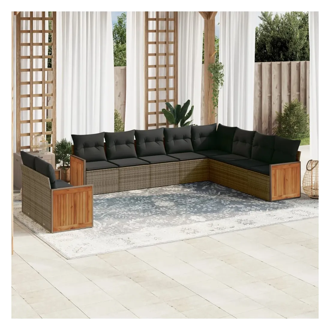 - Matériau : résine tressée, acier enduit de poudre, bois d'acacia massif avec finition à l'huile