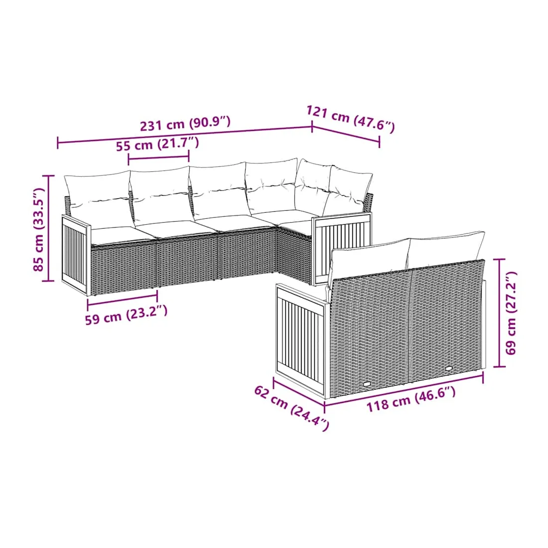 Cet ensemble de canapés de jardin est le complément parfait de votre arrière-cour, terrasse ou patio, offrant un espace confortable et accueillant pour discuter avec la famille et les amis ou simplement se détendre et profiter de l'extérieur. Matériau durable : la résine tressée, également connue sous le nom de poly rotin, est un matériau synthétique solide et nécessitant peu d'entretien qui ressemble au rotin naturel. Il est léger, facile à nettoyer et couramment utilisé pour les meubles d'extérieur en raison de sa durabilité et de ses propriétés de résistance aux intempéries.Fonction de rangement avec sac résistant à l'eau : le mobilier de jardin dispose d'un espace de rangement sous l'assise, complété par un sac résistant à l'eau pour ranger coussins, jouets et autres objets. Le sac intérieur peut être solidement fixé au mobilier d'extérieur grâce à des attaches auto-agrippantes pour plus de stabilité.Housse amovible et lavable : ces coussins de siège sont dotés de housses amovibles pour un lavage et un entretien faciles.Conception modulaire : cet ensemble de meubles d'extérieur a une conception modulaire, ce qui le rend complètement flexible et facile à déplacer, afin que vous puissiez créer un agencement de meubles d'extérieur personnalisé. Bon à savoir :Pour que vos meubles d'extérieur restent beaux, nous vous recommandons de les protéger avec une housse imperméable.