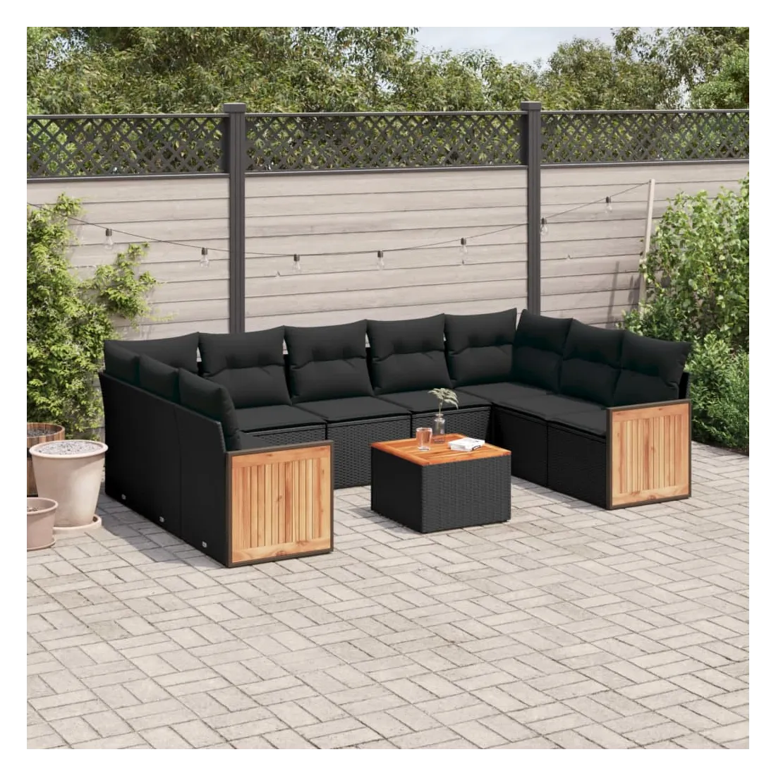 Salon de jardin 10 pcs avec coussins noir résine tressée