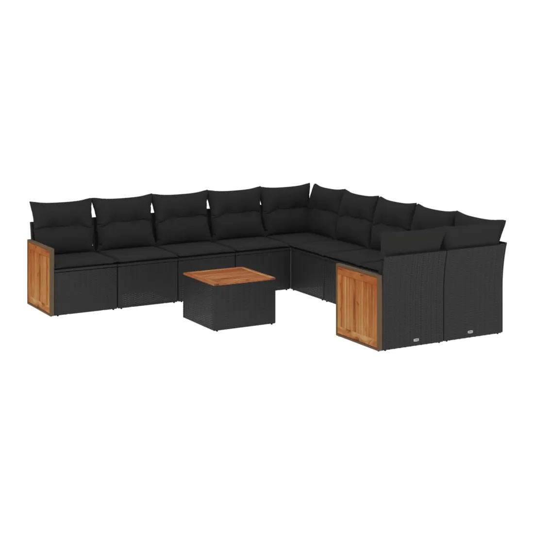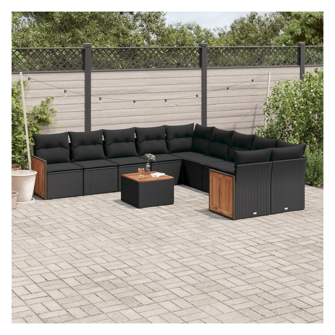 Salon de jardin 11 pcs avec coussins noir résine tressée