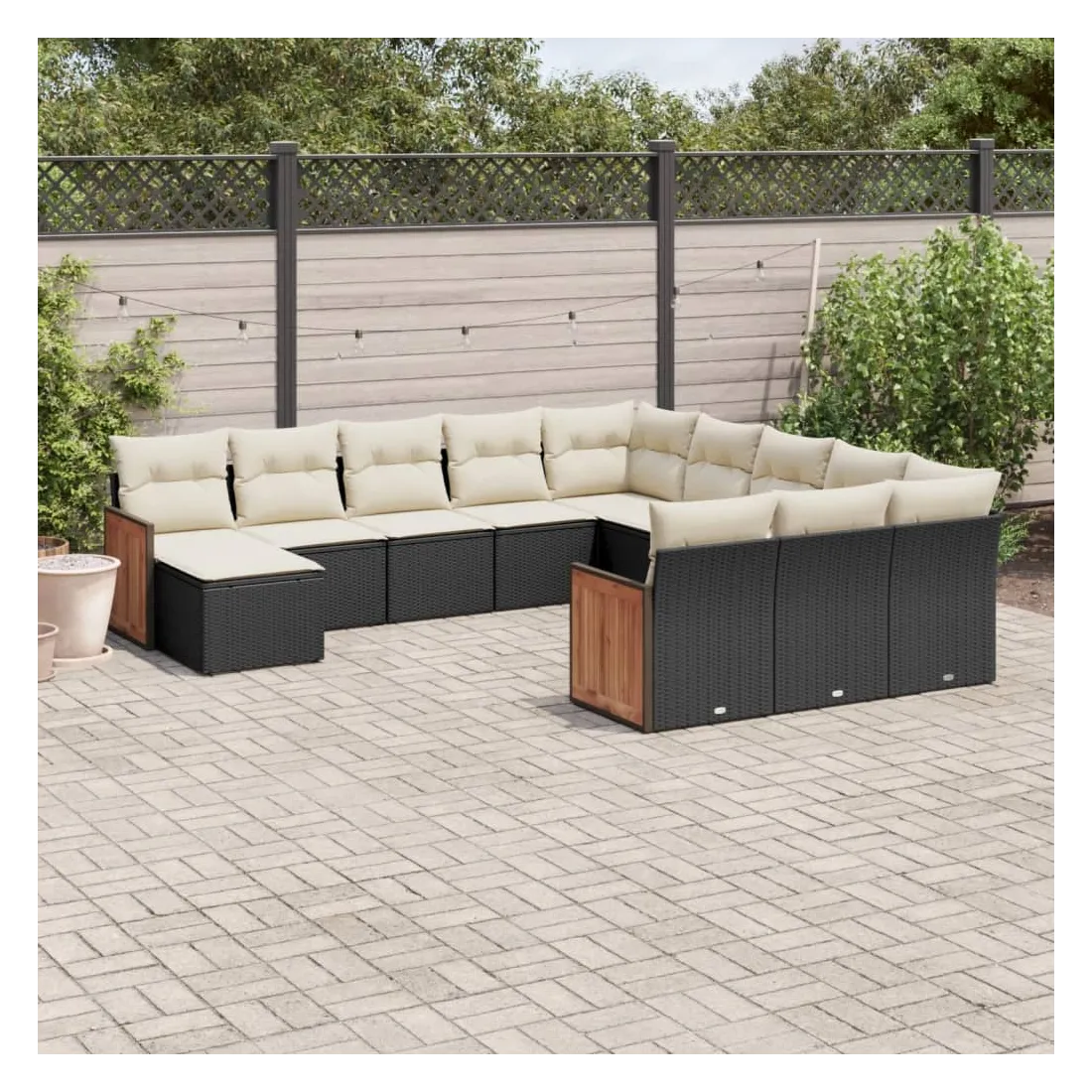 Cet ensemble de canapés de jardin est le complément parfait de votre arrière-cour, terrasse ou patio, offrant un espace confortable et accueillant pour discuter avec la famille et les amis ou simplement se détendre et profiter de l'extérieur. Matériau durable : la résine tressée, également connue sous le nom de poly rotin, est un matériau synthétique solide et nécessitant peu d'entretien qui ressemble au rotin naturel. Il est léger, facile à nettoyer et couramment utilisé pour les meubles d'extérieur en raison de sa durabilité et de ses propriétés de résistance aux intempéries.Fonction de rangement avec sac résistant à l'eau : le mobilier de jardin dispose d'un espace de rangement sous l'assise, complété par un sac résistant à l'eau pour ranger coussins, jouets et autres objets. Le sac intérieur peut être solidement fixé au mobilier d'extérieur grâce à des attaches auto-agrippantes pour plus de stabilité.Housse amovible et lavable : ces coussins de siège sont dotés de housses amovibles pour un lavage et un entretien faciles.Conception modulaire : cet ensemble de meubles d'extérieur a une conception modulaire, ce qui le rend complètement flexible et facile à déplacer, afin que vous puissiez créer un agencement de meubles d'extérieur personnalisé. Bon à savoir :Pour que vos meubles d'extérieur restent beaux, nous vous recommandons de les protéger avec une housse imperméable.