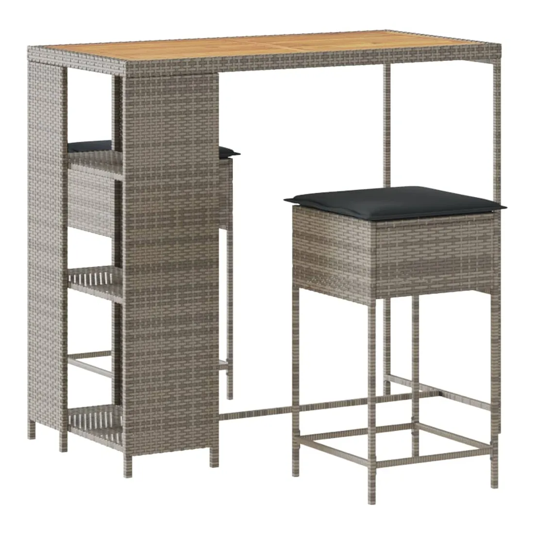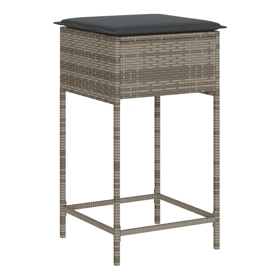 Ensemble de bar de jardin 3 pcs et coussins gris résine tressée