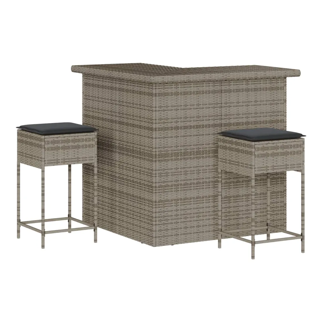 Ensemble de bar de jardin 3 pcs et coussins gris résine tressée