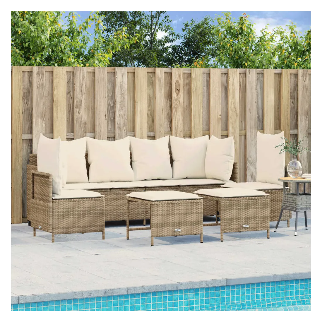Cet ensemble de canapés de jardin est le complément parfait de votre arrière-cour, terrasse ou patio, offrant un espace confortable et accueillant pour discuter avec la famille et les amis ou simplement se détendre et profiter de l'extérieur. Matériau durable : la résine tressée, également connue sous le nom de poly rotin, est un matériau synthétique solide et nécessitant peu d'entretien qui ressemble au rotin naturel. Il est léger, facile à nettoyer et couramment utilisé pour les meubles d'extérieur en raison de sa durabilité et de ses propriétés de résistance aux intempéries.Dossier et repose-pied réglables : ce meuble d'extérieur est doté d'un dossier à 3 positions réglables et d'un repose-pieds à 2 positions réglables, ce qui vous permet de trouver facilement la position la plus confortable et la plus appropriée pour la détente.Expérience d'assise confortable : ce mobilier d'extérieur, doté de coussins épais, offre une expérience d'assise confortable.Pouf polyvalent : le tabouret est polyvalent, servant de repose-pieds confortable lorsque vous vous prélassez sur le canapé ou de siège supplémentaire dans votre jardin.Housse amovible et lavable : ces coussins de siège sont dotés de housses amovibles pour un lavage et un entretien faciles. Bon à savoir :Pour que vos meubles d'extérieur restent beaux, nous vous recommandons de les protéger avec une housse imperméable.