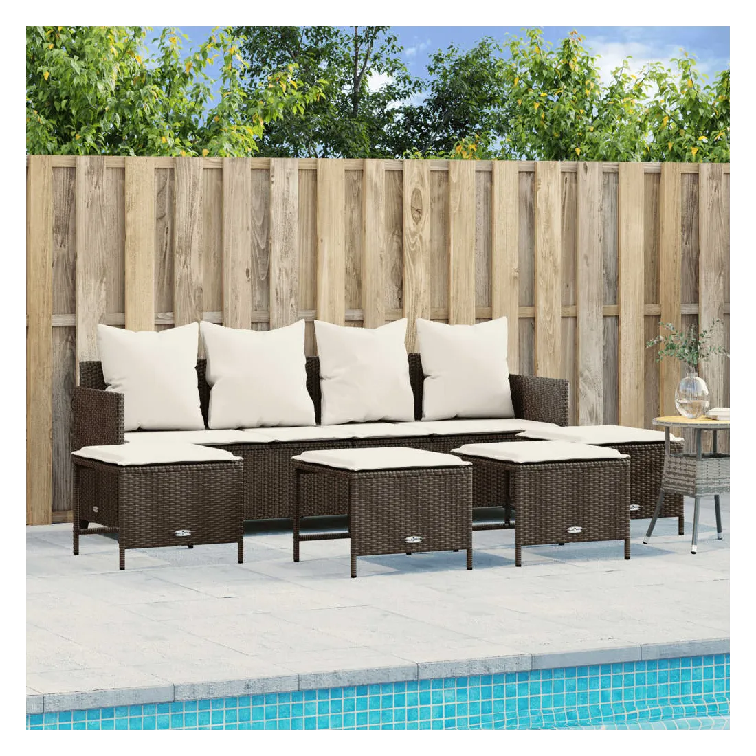 Cet ensemble de canapés de jardin est le complément parfait de votre arrière-cour, terrasse ou patio, offrant un espace confortable et accueillant pour discuter avec la famille et les amis ou simplement se détendre et profiter de l'extérieur. Matériau durable : la résine tressée, également connue sous le nom de poly rotin, est un matériau synthétique solide et nécessitant peu d'entretien qui ressemble au rotin naturel. Il est léger, facile à nettoyer et couramment utilisé pour les meubles d'extérieur en raison de sa durabilité et de ses propriétés de résistance aux intempéries.Dossier et repose-pied réglables : ce meuble d'extérieur est doté d'un dossier à 3 positions réglables et d'un repose-pieds à 2 positions réglables, ce qui vous permet de trouver facilement la position la plus confortable et la plus appropriée pour la détente.Expérience d'assise confortable : ce mobilier d'extérieur, doté de coussins épais, offre une expérience d'assise confortable.Pouf polyvalent : le tabouret est polyvalent, servant de repose-pieds confortable lorsque vous vous prélassez sur le canapé ou de siège supplémentaire dans votre jardin.Housse amovible et lavable : ces coussins de siège sont dotés de housses amovibles pour un lavage et un entretien faciles. Bon à savoir :Pour que vos meubles d'extérieur restent beaux, nous vous recommandons de les protéger avec une housse imperméable.