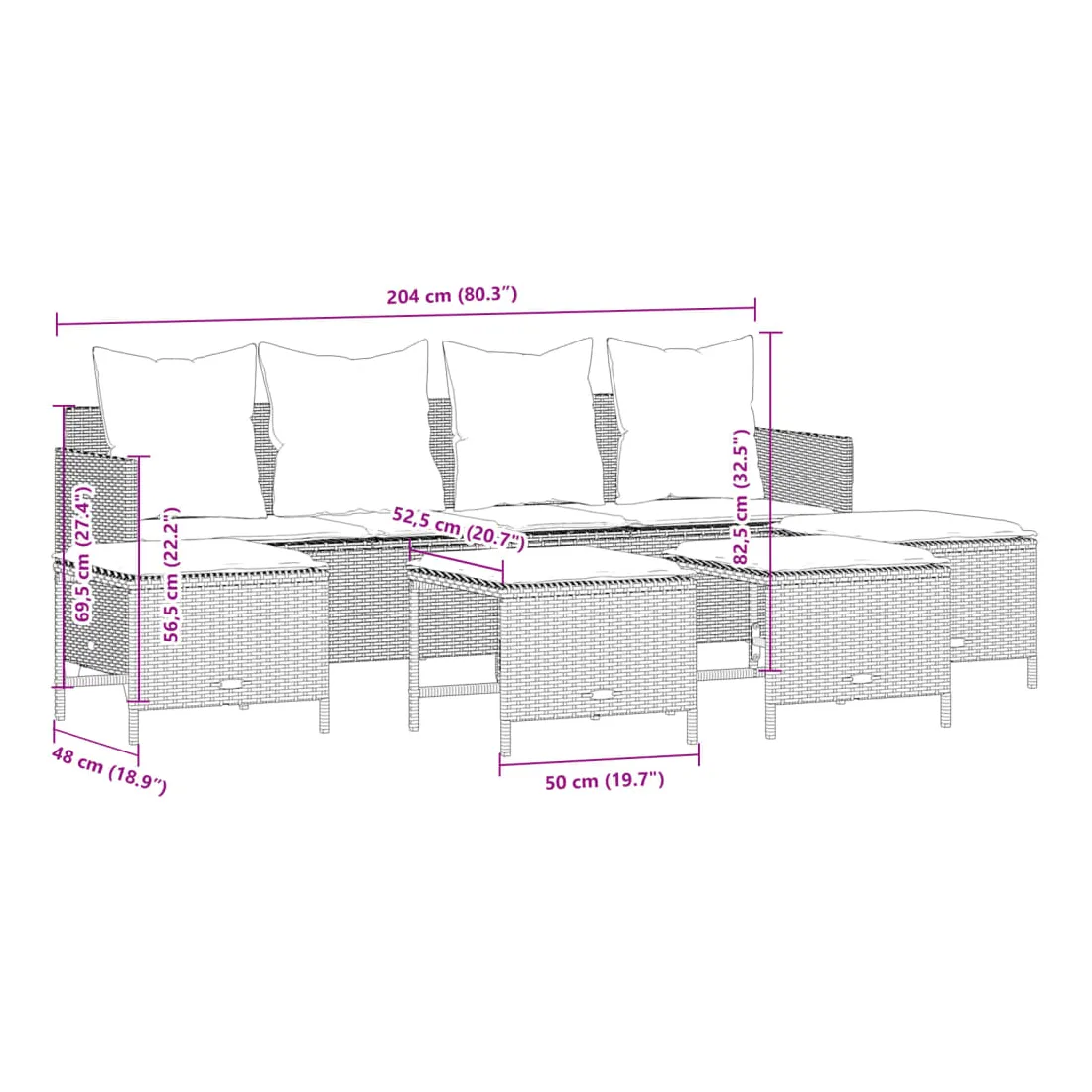 - Dimensions : 204 x 55 x 69,5 cm (l x P x H)