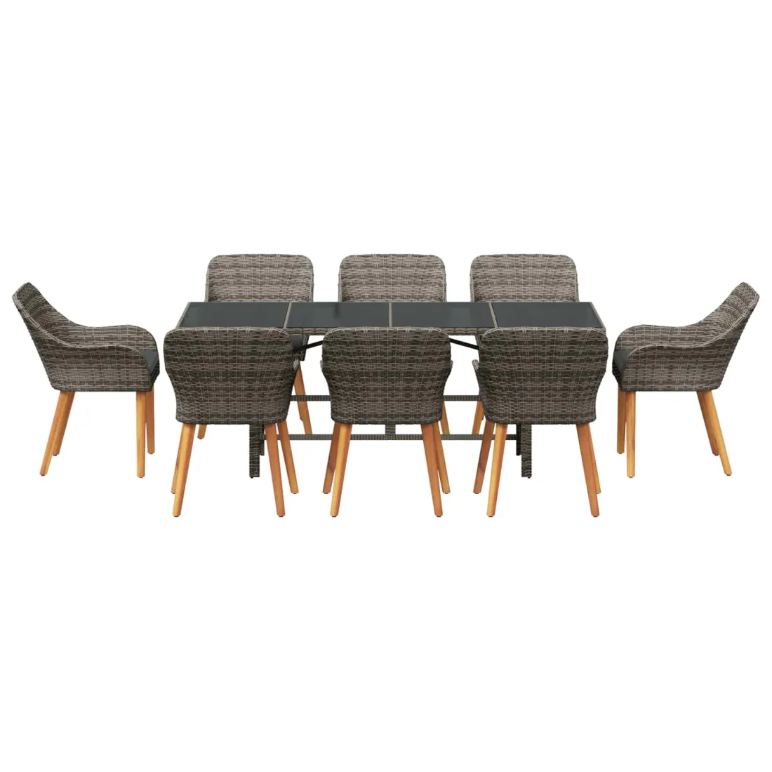 Cet ensemble de salle à manger de jardin stylé est parfait pour améliorer vos moments dehors tout en ajoutant une touche de confort. Super pour les jardins et terrasses, il combine un design moderne avec des aspects pratiques pour créer un coin repas sympa pour vos soirées en plein air. Avec ses lignes simples et son style minimaliste, cet ensemble s’adapte à plein de thèmes décoratifs tout en offrant confort et performance. Son design séduisant et sa nature accueillante en font un choix populaire pour les propriétaires qui cherchent une solution agréable mais classe pour manger à l'extérieur. Matériaux de qualité supérieure L'ensemble de salle à manger est entièrement construit en Poly Rattan, connu pour sa solidité et son allure esthétique. La résistance aux UV du matériau permet une durabilité, gardant sa couleur éclatante même au soleil. L'acier est recouvert de poudre pour plus de solidité, créant un cadre qui résiste facilement aux intempéries. Ensemble complet Chaque siège a un dossier confortable et des accoudoirs en Poly Rattan, offrant un confort ergonomique pour vos repas. Tous les éléments, des sièges au cadre de la table, créent une ambiance agréable pour discuter et se détendre. Fonctionnalité moderne Les lignes modernes et épurées de l'ensemble de salle à manger combinent simplicité et raffinement. Sa conception adaptable le rend parfait pour les espaces extérieurs contemporains tout en restant fonctionnel sans être compliqué. Il représente l'essence du design de meubles tendance. Usages polyvalents Parfait pour des déjeuners en plein air, des rencontres décontractées ou même un café tranquille en solo. Il passe facilement de dîners intimes à un coin reposant, s'adaptant à toutes les occasions et états d'esprit. La polyvalence de cet ensemble souligne sa grande valeur. Entretien simple Garder ce mobilier en bon état est facile : un coup de chiffon humide suffit. Un entretien régulier prolongera la durée de vie et maintiendra son look impeccable, offrant une grande praticité à l'utilisateur.