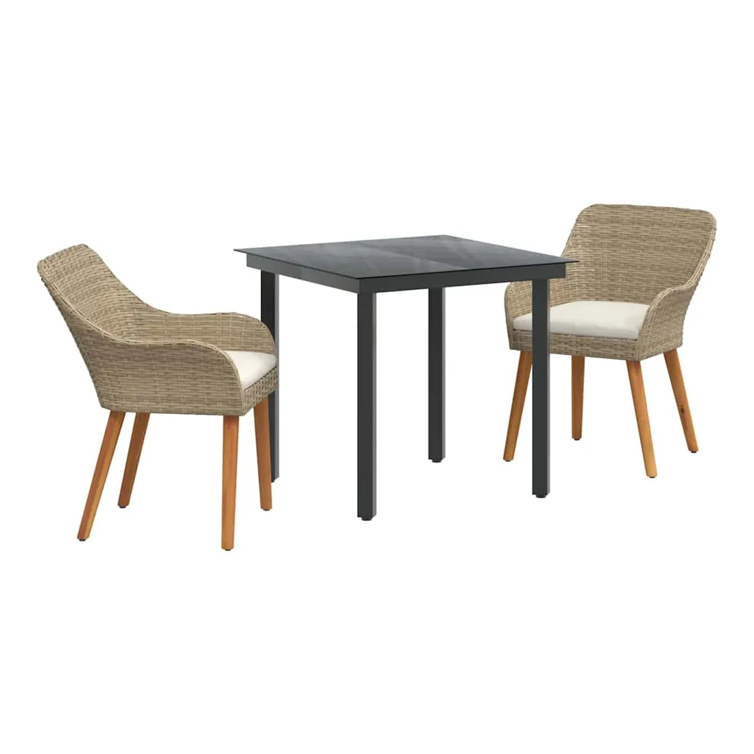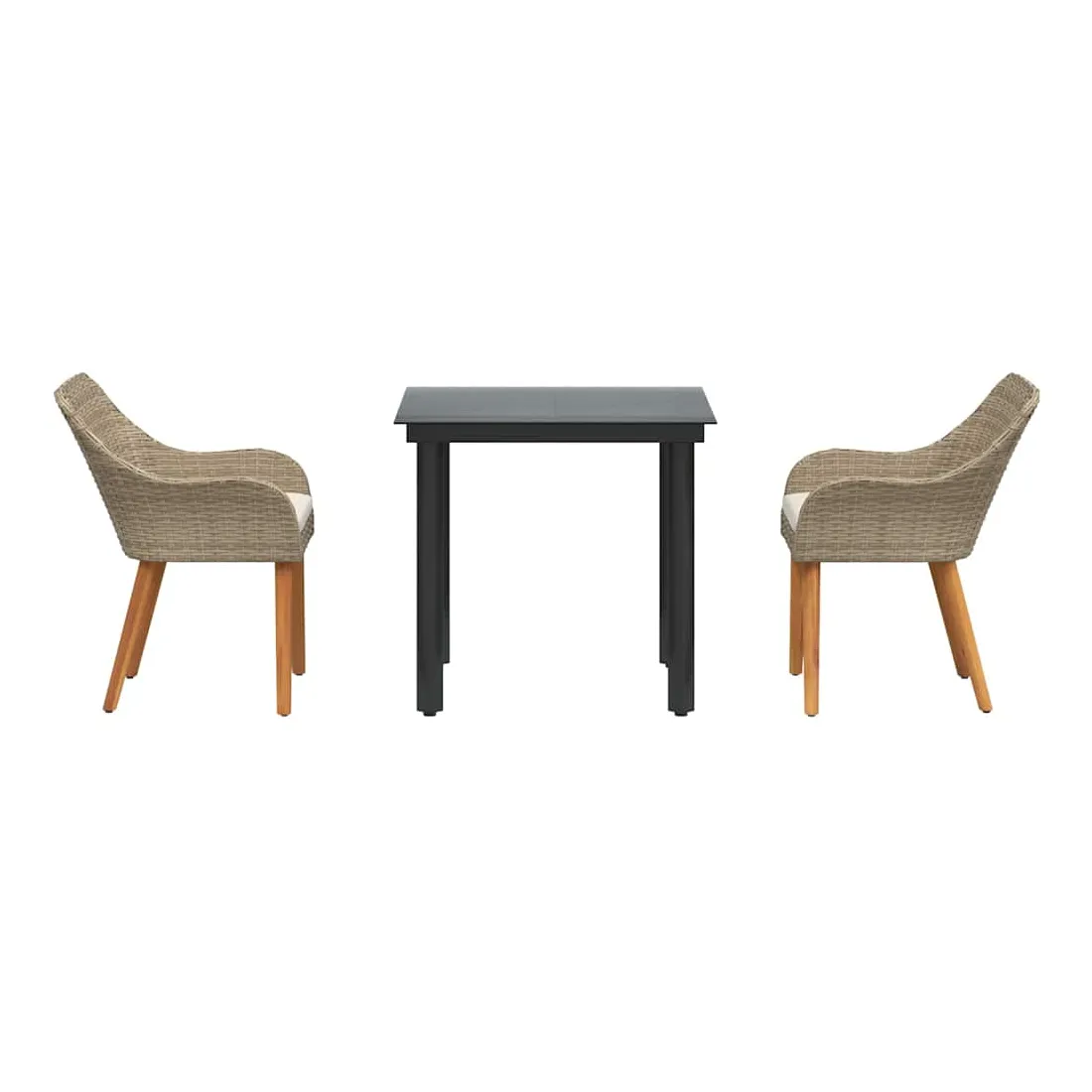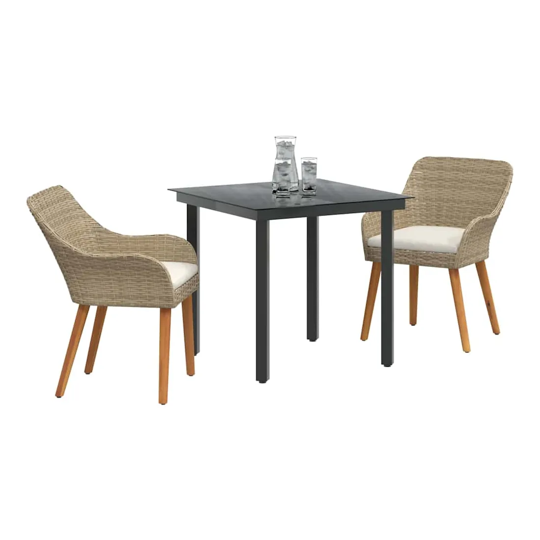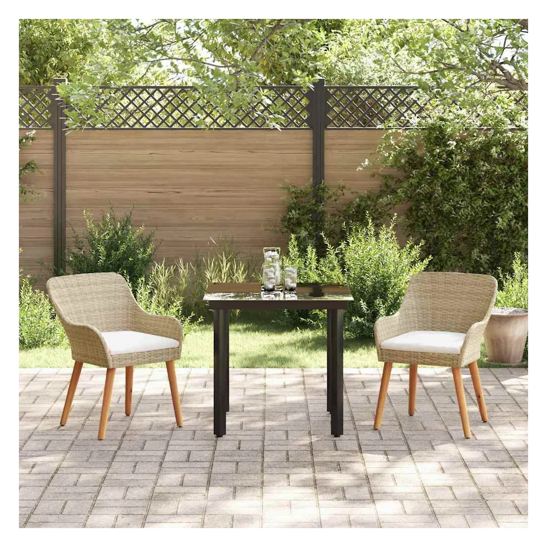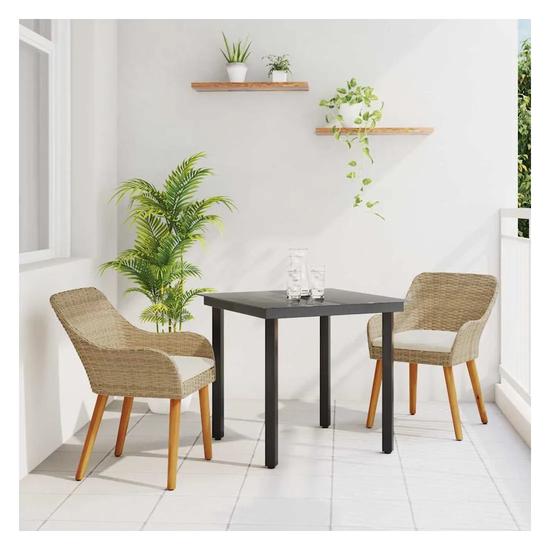 Ce superbe set de salle à manger de jardin change n'importe quel espace extérieur en un coin moderne. Fait pour ceux qui aiment les lignes claires et le style contemporain, il combine sophistication et utilité. Son cadre élégant attire le regard, que ce soit pour un brunch en toute intimité ou un dîner animé. La simplicité du set, combinée à un mix de matériaux trendy, lui permet de s'intégrer facilement dans des jardins modernes ou des terrasses stylées. Profitez de moments fun tout en vous relaxant dans le confort et la beauté. Poly Rattan Haute Densité : Ce set est fait en poly rattan connu pour sa durabilité et sa résistance aux UV. Ce matériau endure les intempéries tout en offrant un confort d'assise et en gardant un look élégant pour n'importe quel jardin ou terrasse. Arrangement Complet de Sièges : Notre set inclut des chaises stylées et une table de patio avec un plateau en verre trempé. Chaque chaise est équipée de coussins résistants aux intempéries pour plus de confort et de style, et la table en verre trempé apporte une touche d'élégance et se nettoie facilement. Construction Supérieure : Les pieds en acier recouvert de poudre garantissent la stabilité et supportent jusqu'à 110 kg par chaise. Une structure solide pour que votre mobilier de jardin reste en bon état dans le temps. Style Moderne : Avec un design minimaliste, le style moderne de ce set s'adapte facilement à des ambiances contemporaines. Chic, sophistiqué et bien conçu, il est parfait pour ceux qui cherchent à marier forme et fonction dans leur espace extérieur. Entretien Simple : Pas de tracas pour l'entretien de ce set ; un coup de chiffon humide par ci par là et c'est bon. L'assemblage nécessite deux personnes et un tournevis, pour une installation simple.