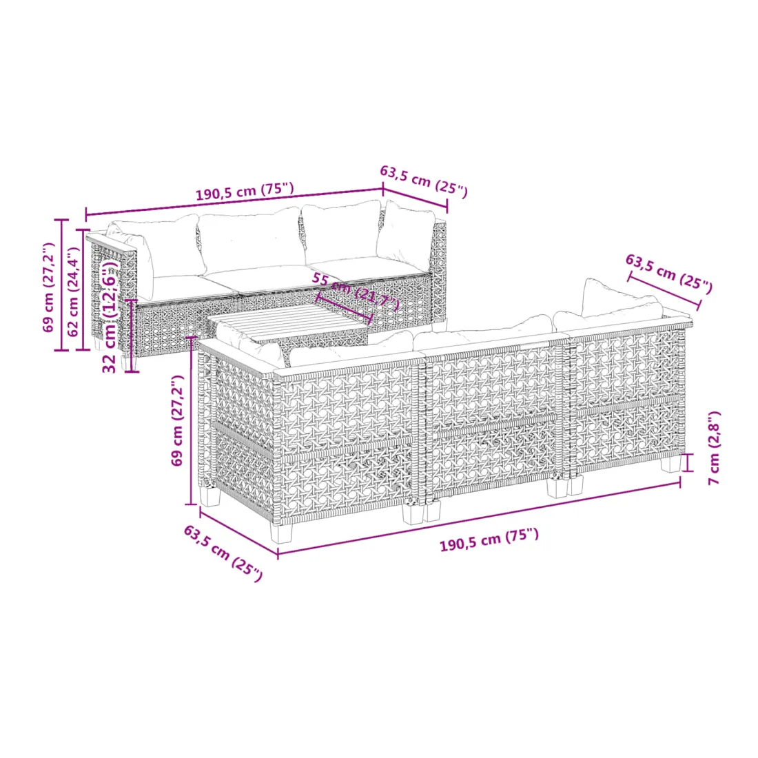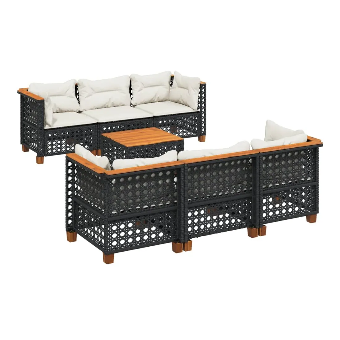Cet ensemble de canapés de jardin est le complément parfait de votre arrière-cour, terrasse ou patio, offrant un espace confortable et accueillant pour discuter avec la famille et les amis ou simplement se détendre et profiter de l'extérieur. Matériau durable : la résine tressée, également connue sous le nom de poly rotin, est un matériau synthétique solide et nécessitant peu d'entretien qui ressemble au rotin naturel. Il est léger, facile à nettoyer et couramment utilisé pour les meubles d'extérieur en raison de sa durabilité et de ses propriétés de résistance aux intempéries.Expérience d'assise confortable : ce mobilier d'extérieur, doté de coussins épais, offre une expérience d'assise confortable.Housse amovible et lavable : ces coussins de siège sont dotés de housses amovibles pour un lavage et un entretien faciles.Dessus stable et facile à nettoyer : cette table de jardin a un dessus en bois d'acacia robuste, durable et facile à nettoyer avec un chiffon humide.Conception modulaire : cet ensemble de meubles d'extérieur a une conception modulaire, ce qui le rend complètement flexible et facile à déplacer, afin que vous puissiez créer un agencement de meubles d'extérieur personnalisé. Bon à savoir :Pour que vos meubles d'extérieur restent beaux, nous vous recommandons de les protéger avec une housse imperméable.
