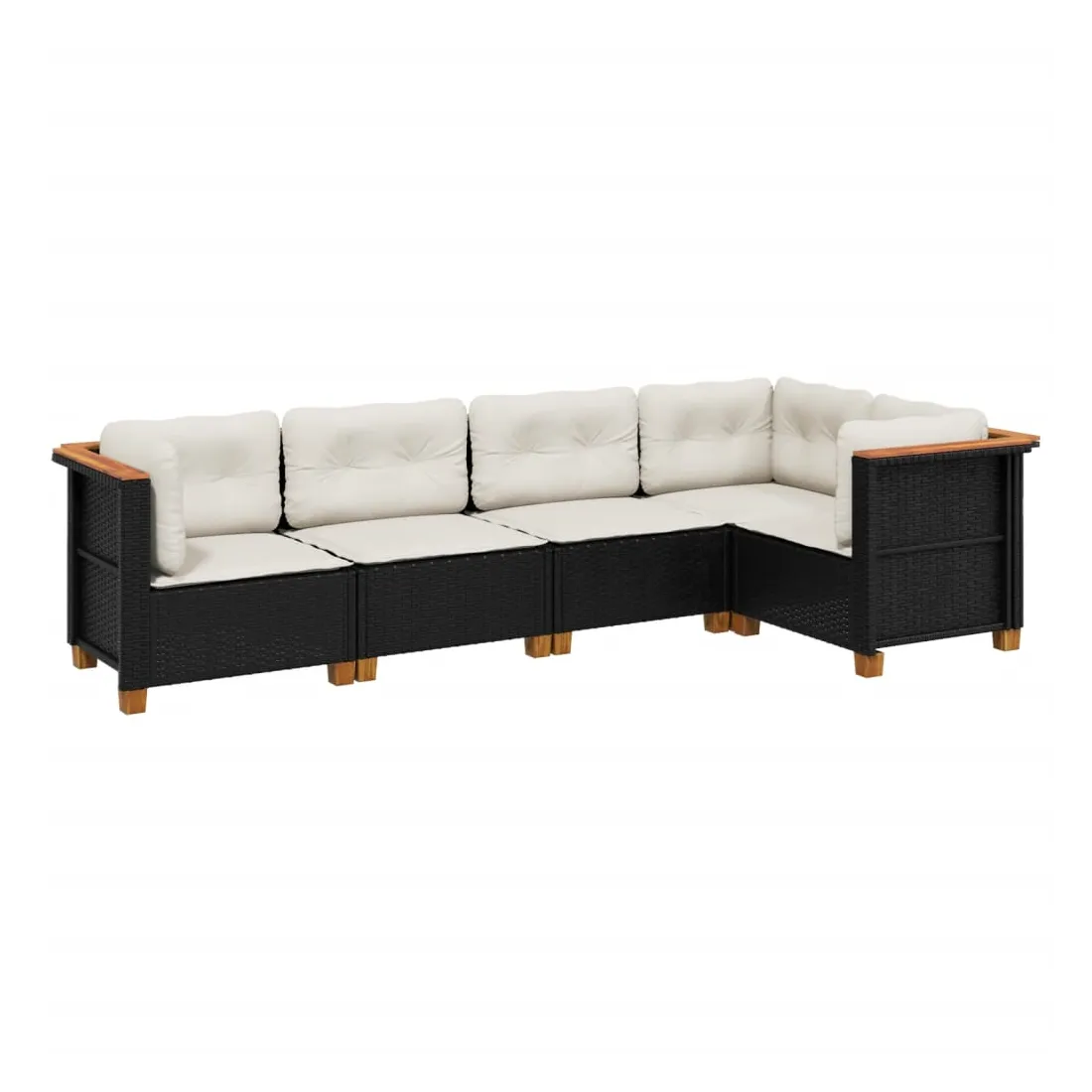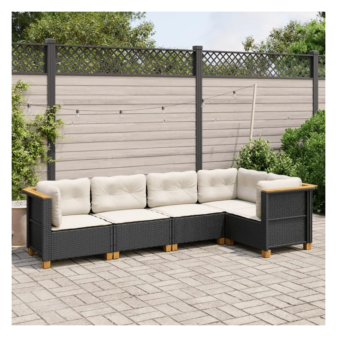 Salon de jardin 5 pcs avec coussins noir résine tressée
