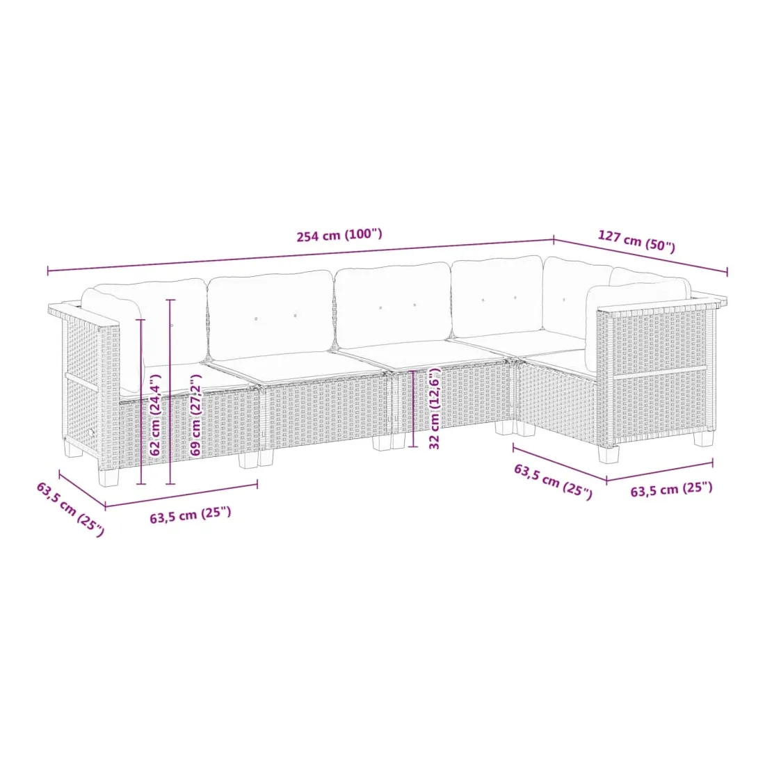 • Dimensions du coussin de dossier (angle) : 63,5 x 35 x 10 cm (L x l x é)