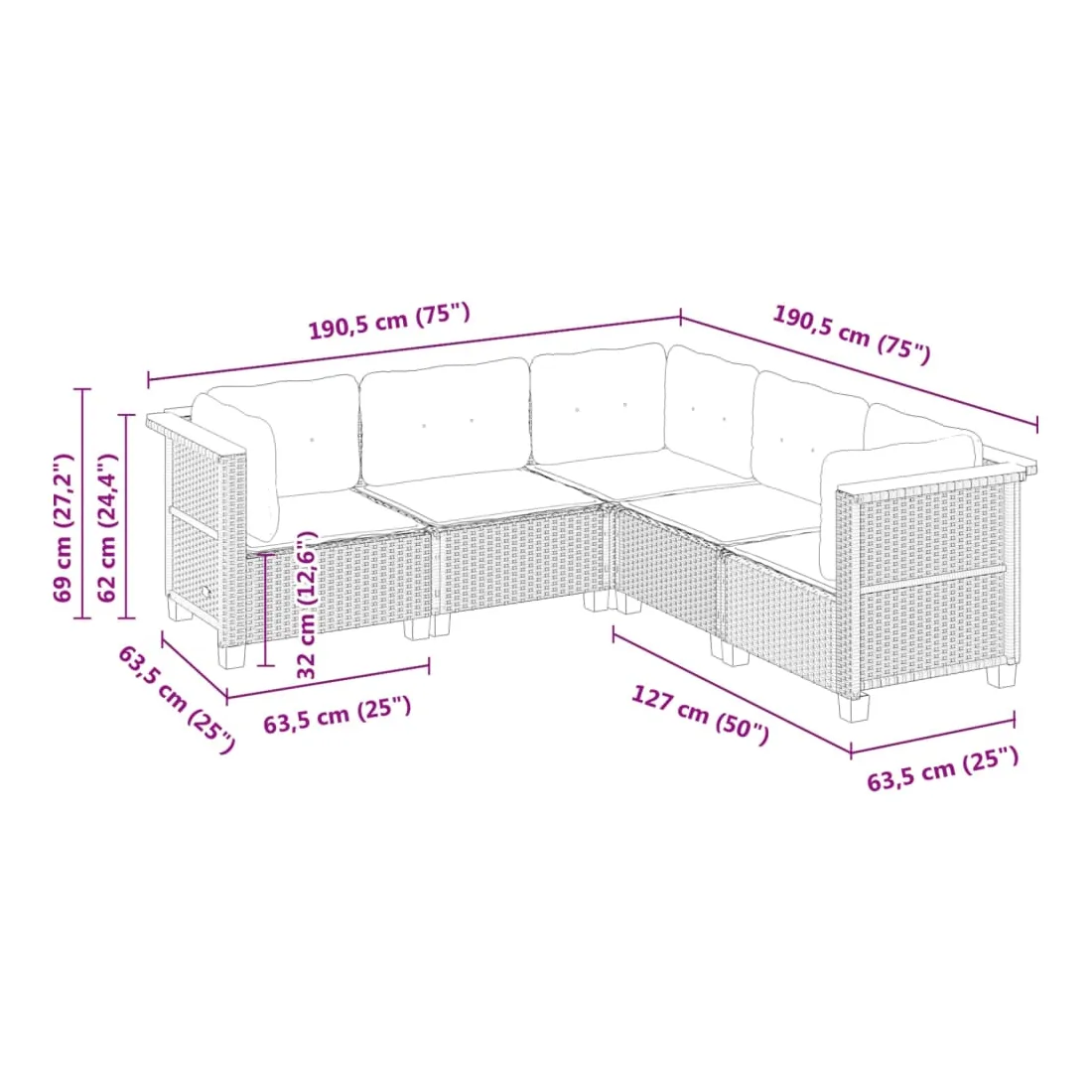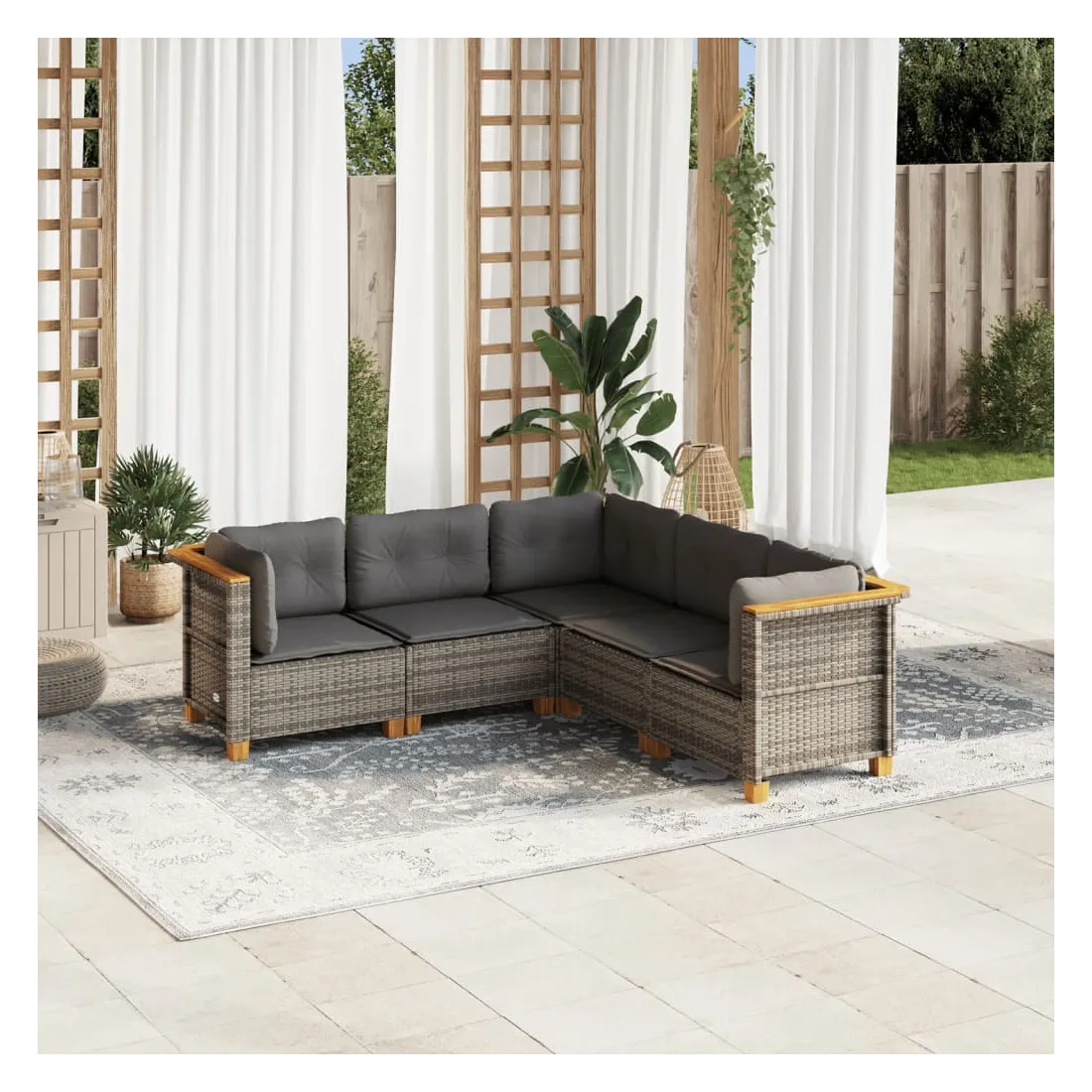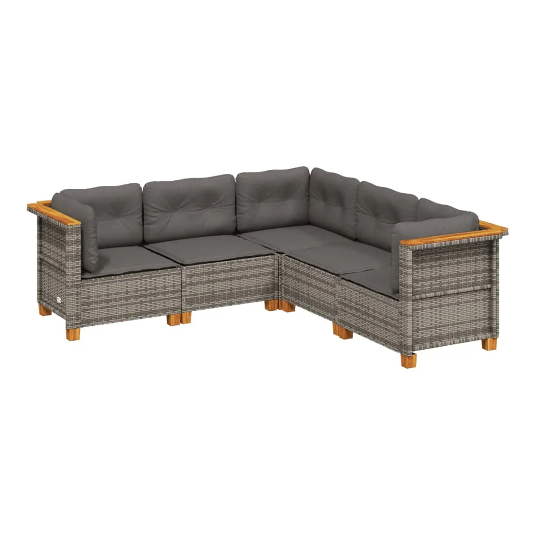 Salon de jardin 5 pcs avec coussins gris résine tressée