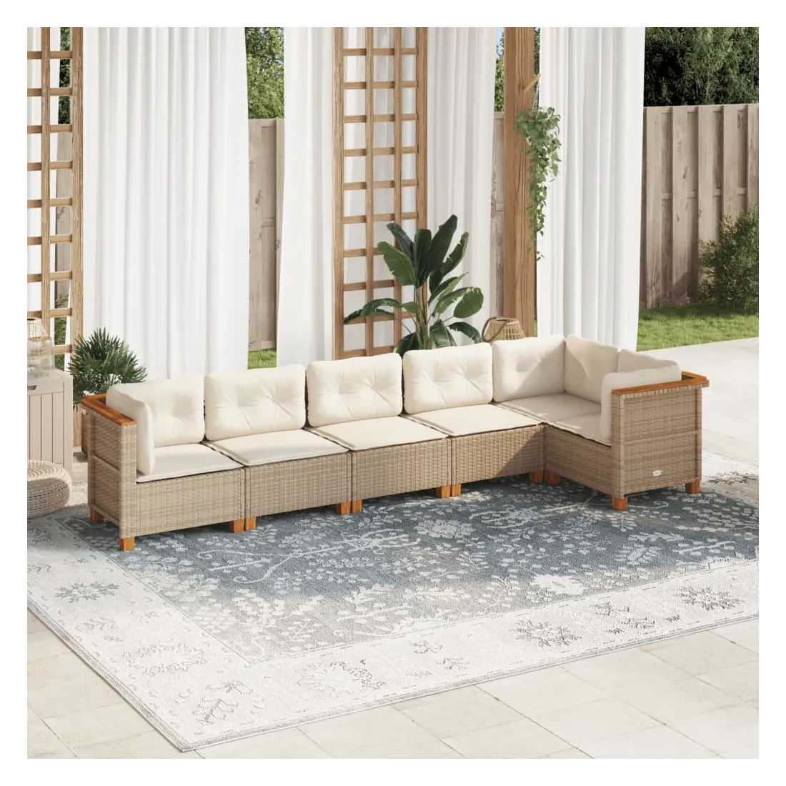 Salon de jardin avec coussins 6 pcs beige résine tressée