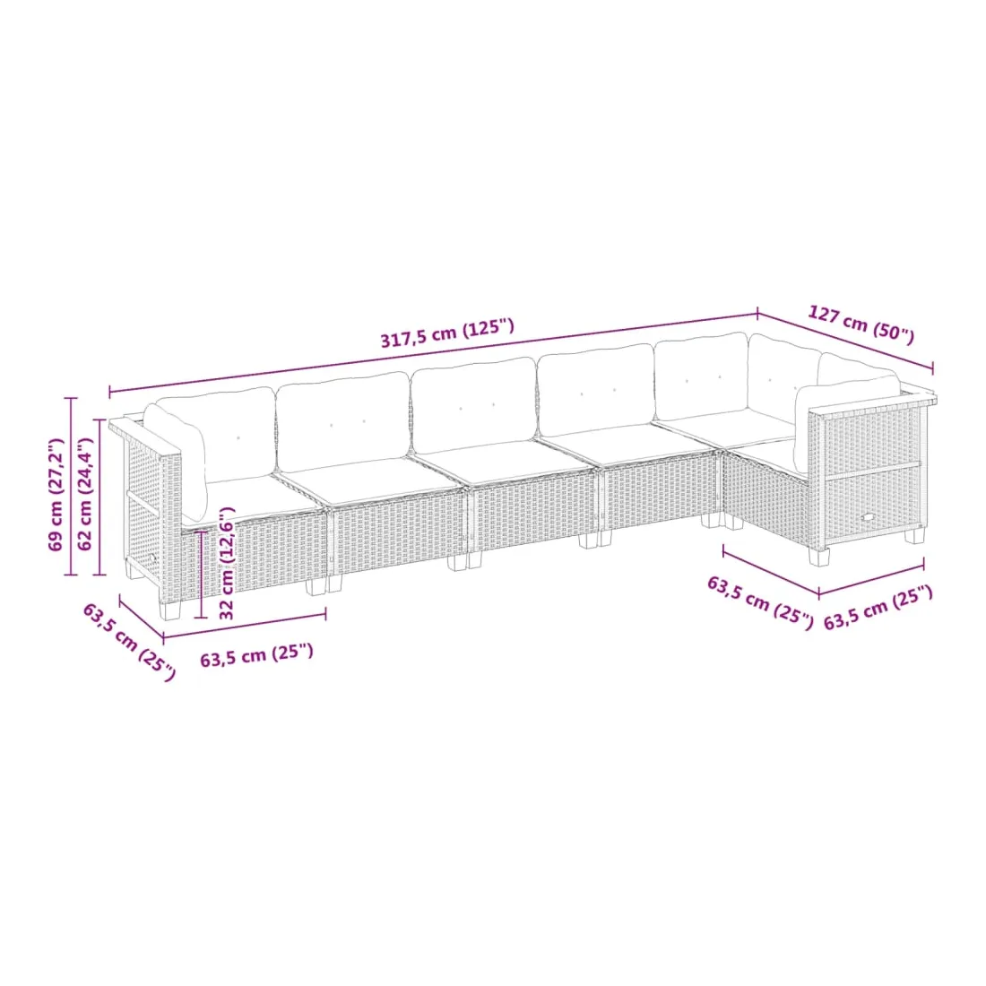 • Dimensions du coussin de dossier (angle) : 63,5 x 35 x 10 cm (L x l x é)