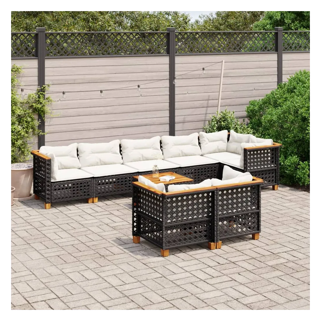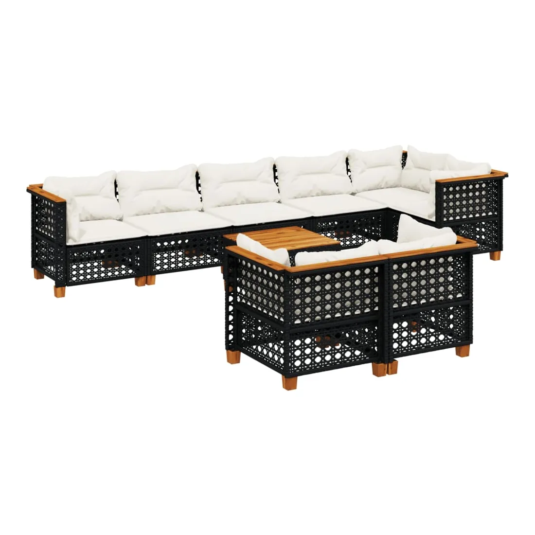 Cet ensemble de canapés de jardin est le complément parfait de votre arrière-cour, terrasse ou patio, offrant un espace confortable et accueillant pour discuter avec la famille et les amis ou simplement se détendre et profiter de l'extérieur. Matériau durable : la résine tressée, également connue sous le nom de poly rotin, est un matériau synthétique solide et nécessitant peu d'entretien qui ressemble au rotin naturel. Il est léger, facile à nettoyer et couramment utilisé pour les meubles d'extérieur en raison de sa durabilité et de ses propriétés de résistance aux intempéries.Expérience d'assise confortable : ce mobilier d'extérieur, doté de coussins épais, offre une expérience d'assise confortable.Housse amovible et lavable : ces coussins de siège sont dotés de housses amovibles pour un lavage et un entretien faciles.Dessus stable et facile à nettoyer : cette table de jardin a un dessus en bois d'acacia robuste, durable et facile à nettoyer avec un chiffon humide.Conception modulaire : cet ensemble de meubles d'extérieur a une conception modulaire, ce qui le rend complètement flexible et facile à déplacer, afin que vous puissiez créer un agencement de meubles d'extérieur personnalisé. Bon à savoir :Pour que vos meubles d'extérieur restent beaux, nous vous recommandons de les protéger avec une housse imperméable.