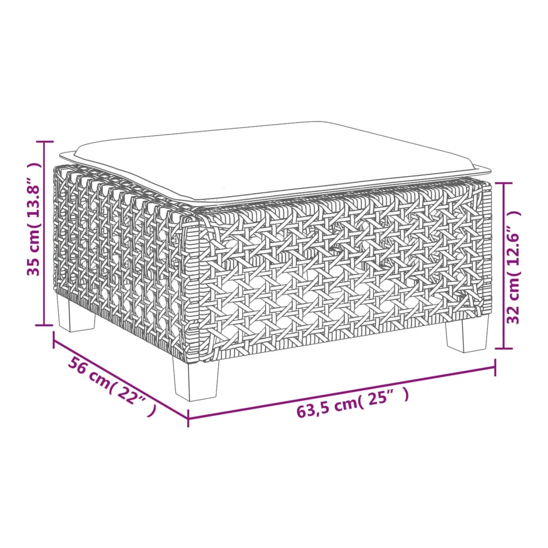 - Hauteur du siège à partir du sol (sans coussin) : 32 cm