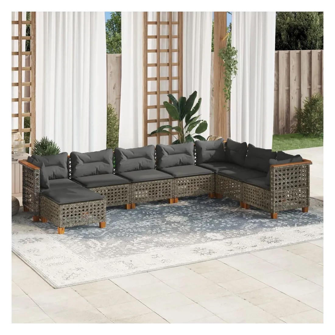 Cet ensemble de canapés de jardin est le complément parfait de votre arrière-cour, terrasse ou patio, offrant un espace confortable et accueillant pour discuter avec la famille et les amis ou simplement se détendre et profiter de l'extérieur. Matériau durable : la résine tressée, également connue sous le nom de poly rotin, est un matériau synthétique solide et nécessitant peu d'entretien qui ressemble au rotin naturel. Il est léger, facile à nettoyer et couramment utilisé pour les meubles d'extérieur en raison de sa durabilité et de ses propriétés de résistance aux intempéries.Expérience d'assise confortable : ce mobilier d'extérieur, doté de coussins épais, offre une expérience d'assise confortable.Housse amovible et lavable : ces coussins de siège sont dotés de housses amovibles pour un lavage et un entretien faciles.Conception modulaire : cet ensemble de meubles d'extérieur a une conception modulaire, ce qui le rend complètement flexible et facile à déplacer, afin que vous puissiez créer un agencement de meubles d'extérieur personnalisé. Bon à savoir :Pour que vos meubles d'extérieur restent beaux, nous vous recommandons de les protéger avec une housse imperméable.