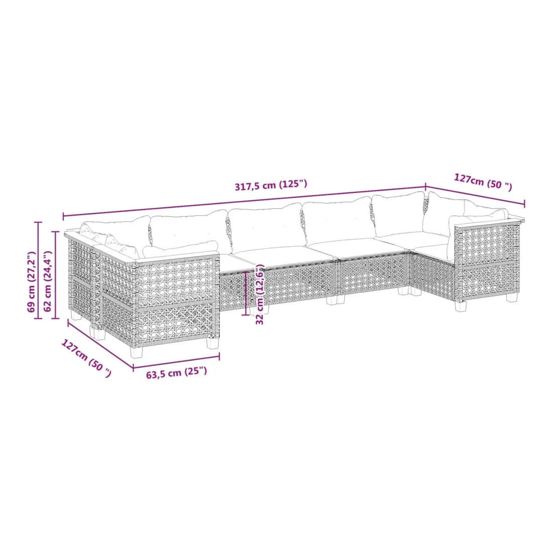 - Dimensions du coussin de dossier (angle) : 63,5 x 35 x 10 cm (L x l x é)
