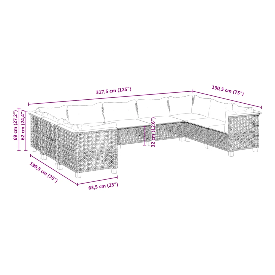 Cet ensemble de canapés de jardin est le complément parfait de votre arrière-cour, terrasse ou patio, offrant un espace confortable et accueillant pour discuter avec la famille et les amis ou simplement se détendre et profiter de l'extérieur. Matériau durable : la résine tressée, également connue sous le nom de poly rotin, est un matériau synthétique solide et nécessitant peu d'entretien qui ressemble au rotin naturel. Il est léger, facile à nettoyer et couramment utilisé pour les meubles d'extérieur en raison de sa durabilité et de ses propriétés de résistance aux intempéries.Expérience d'assise confortable : ce mobilier d'extérieur, doté de coussins épais, offre une expérience d'assise confortable.Housse amovible et lavable : ces coussins de siège sont dotés de housses amovibles pour un lavage et un entretien faciles.Conception modulaire : cet ensemble de meubles d'extérieur a une conception modulaire, ce qui le rend complètement flexible et facile à déplacer, afin que vous puissiez créer un agencement de meubles d'extérieur personnalisé. Bon à savoir :Pour que vos meubles d'extérieur restent beaux, nous vous recommandons de les protéger avec une housse imperméable.