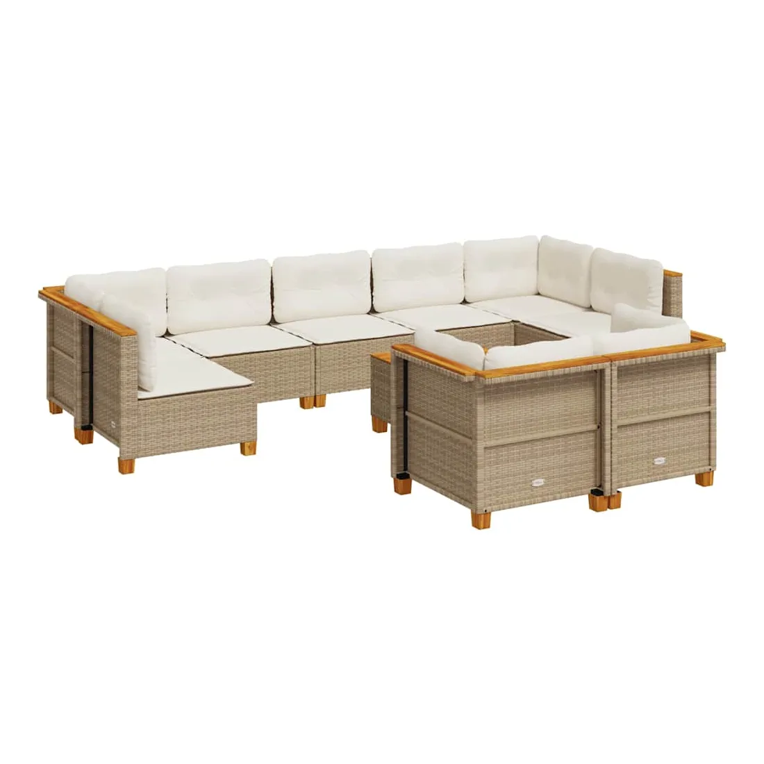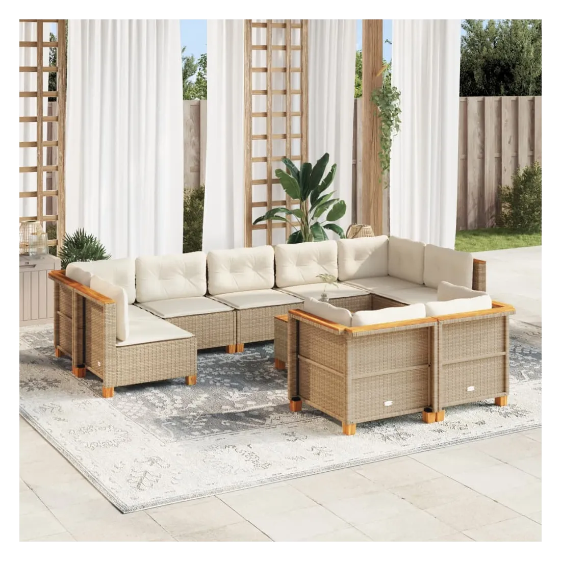 Cet ensemble de canapés de jardin est le complément parfait de votre arrière-cour, terrasse ou patio, offrant un espace confortable et accueillant pour discuter avec la famille et les amis ou simplement se détendre et profiter de l'extérieur. Matériau durable : la résine tressée, également connue sous le nom de poly rotin, est un matériau synthétique solide et nécessitant peu d'entretien qui ressemble au rotin naturel. Elle est légère, facile à nettoyer et couramment utilisée pour les meubles d'extérieur en raison de sa durabilité et de ses propriétés de résistance aux intempéries.Expérience d'assise confortable : ce mobilier d'extérieur, doté de coussins épais, offre une expérience d'assise confortable.Housse amovible et lavable : ces coussins de siège sont dotés de housses amovibles pour un lavage et un entretien faciles.Dessus stable et facile à nettoyer : cette table de jardin a un dessus en bois d'acacia robuste, durable et facile à nettoyer avec un chiffon humide.Conception modulaire : cet ensemble de meubles d'extérieur a une conception modulaire, ce qui le rend complètement flexible et facile à déplacer, afin que vous puissiez créer un agencement de meubles d'extérieur personnalisé. Bon à savoir :Pour que vos meubles d'extérieur restent beaux, nous vous recommandons de les protéger avec une housse imperméable.