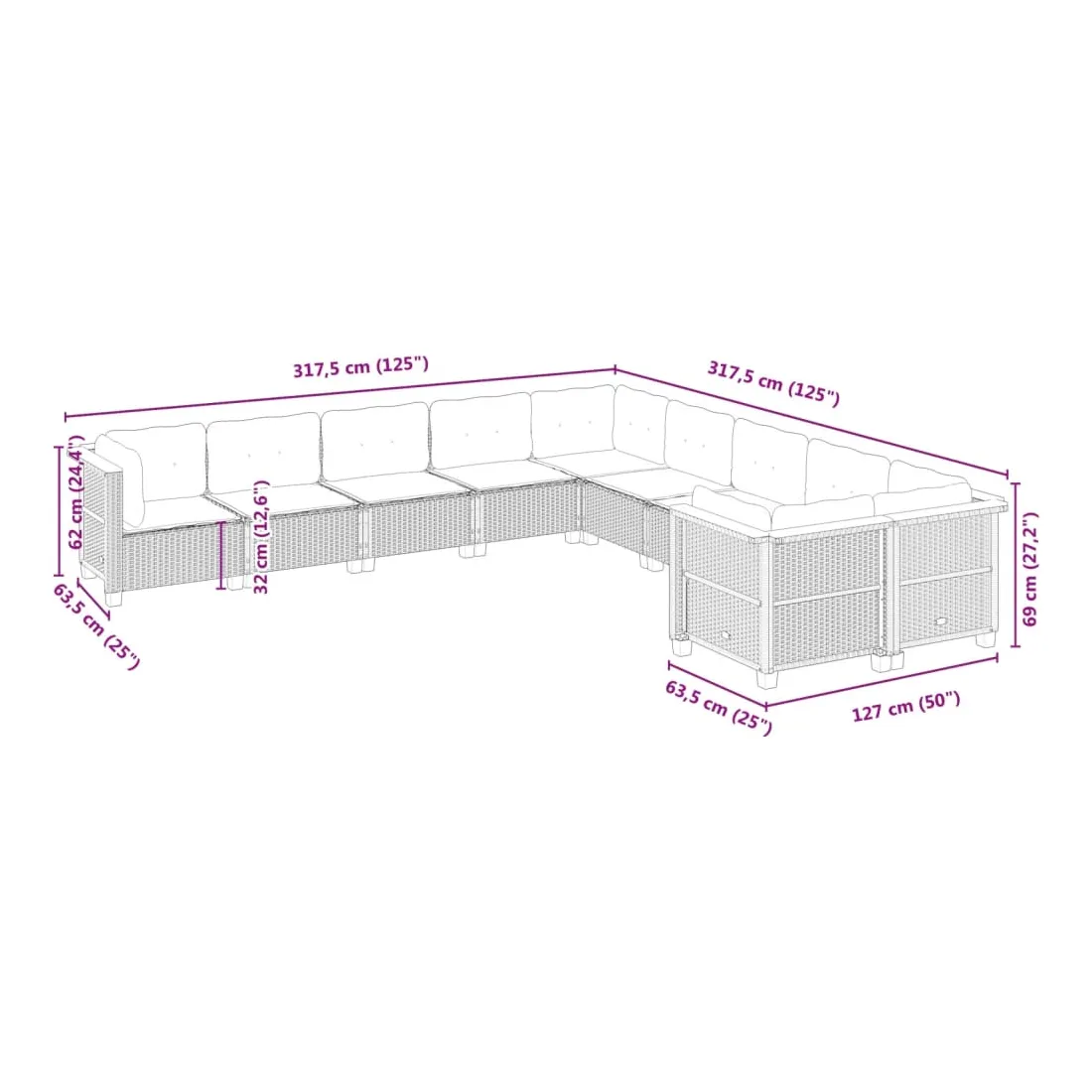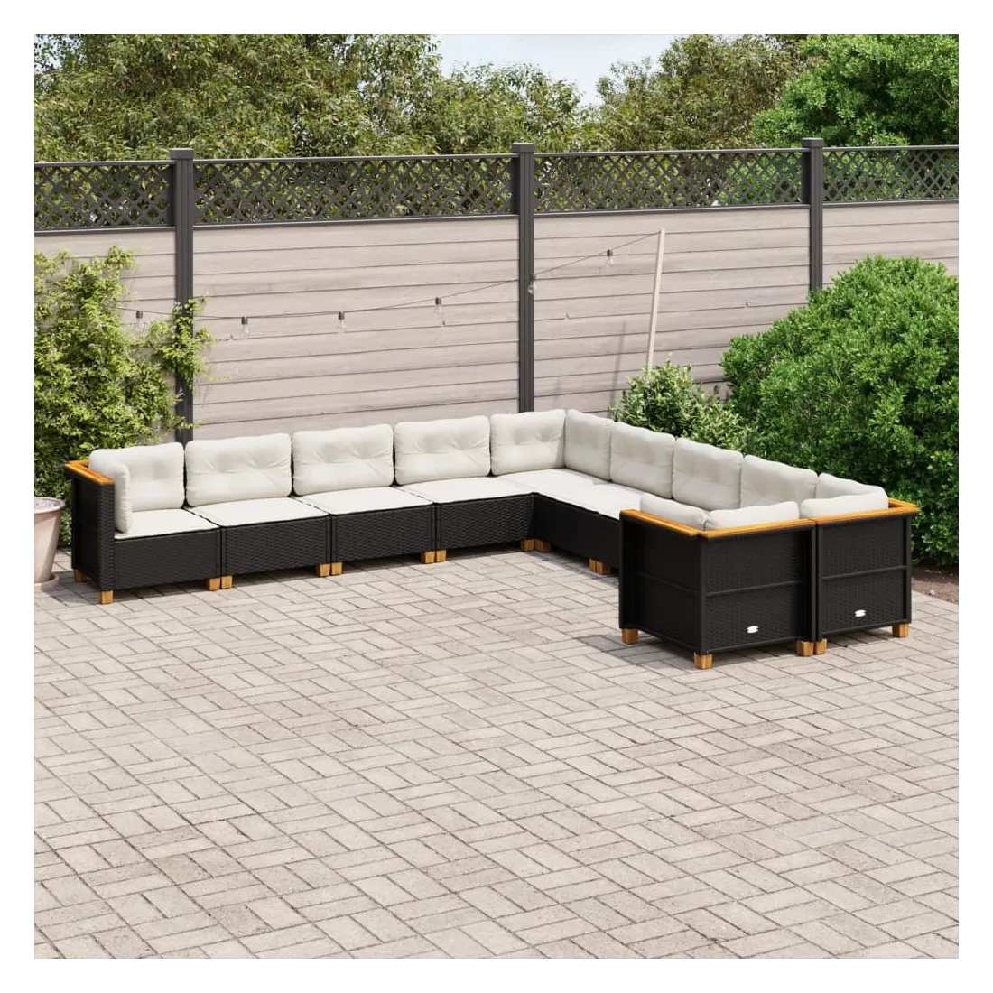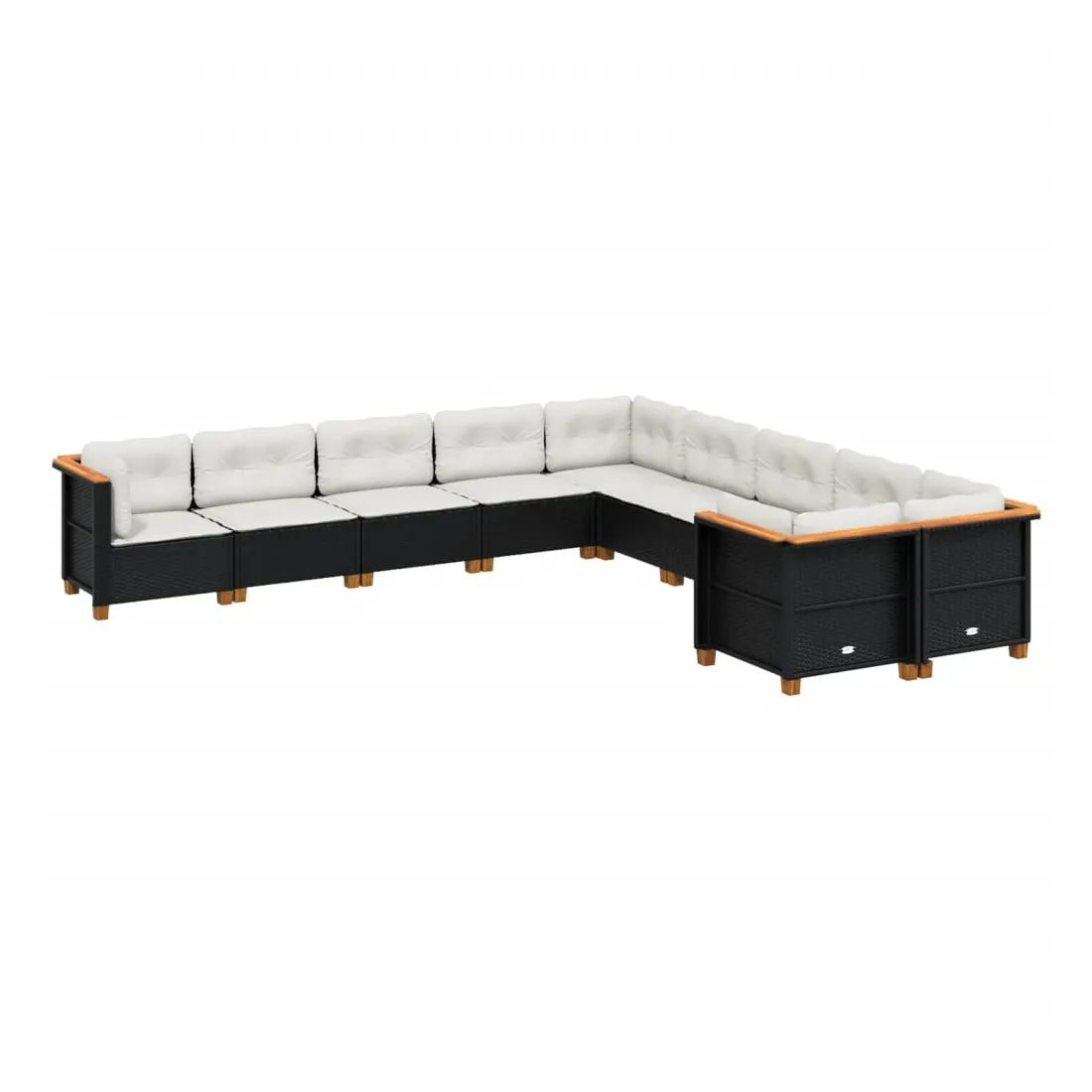 Salon de jardin 10 pcs avec coussins noir résine tressée