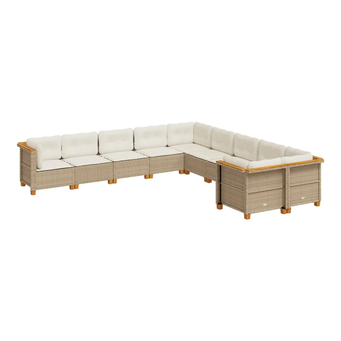 Salon de jardin avec coussins 10 pcs beige résine tressée