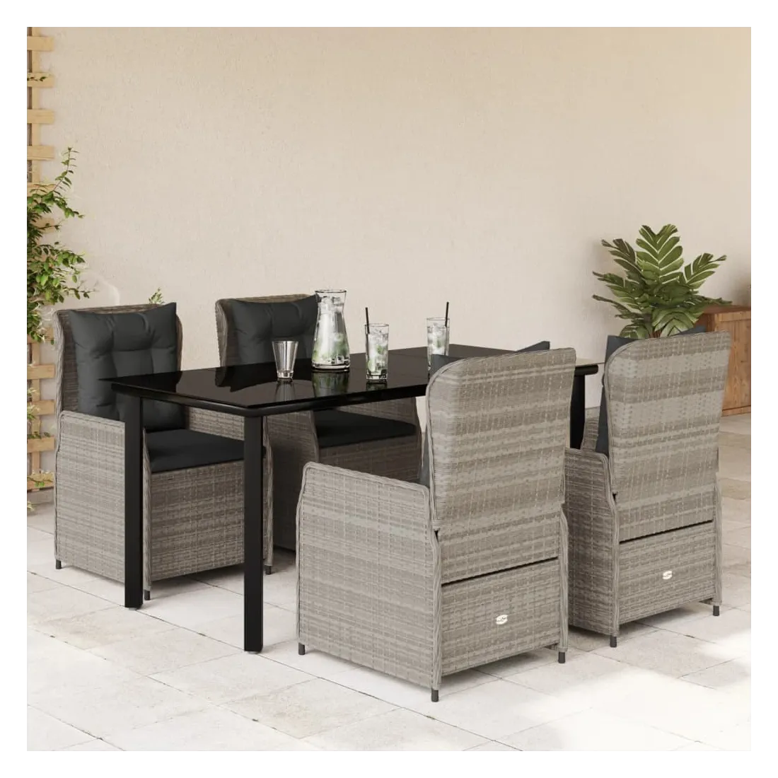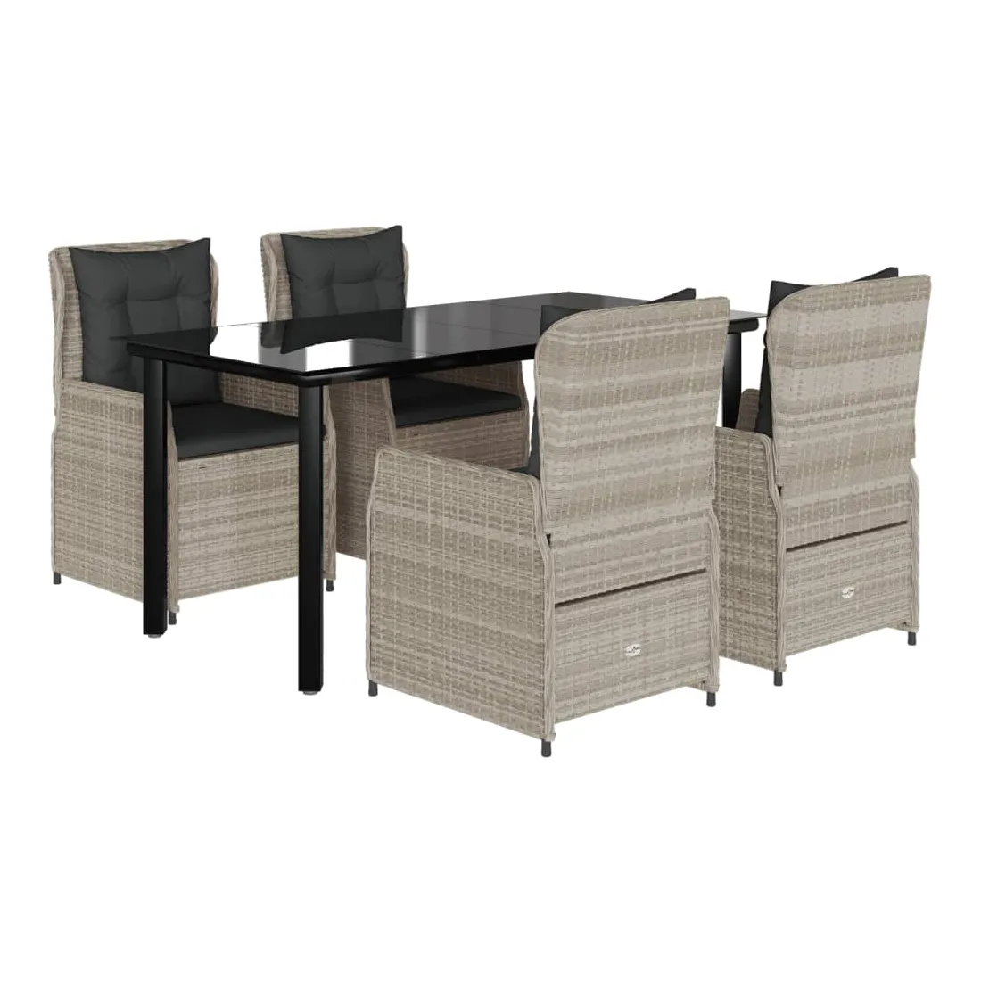 Ensemble à manger de jardin et coussins 5 pcs gris clair rotin