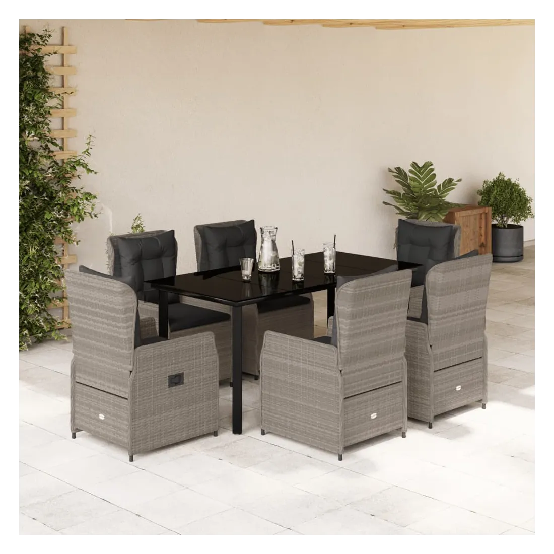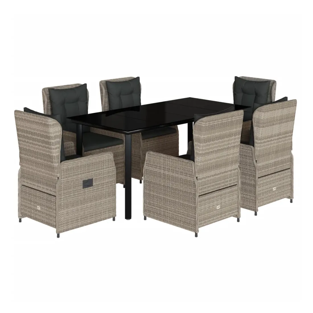 Ensemble à manger de jardin et coussins 7 pcs gris clair rotin