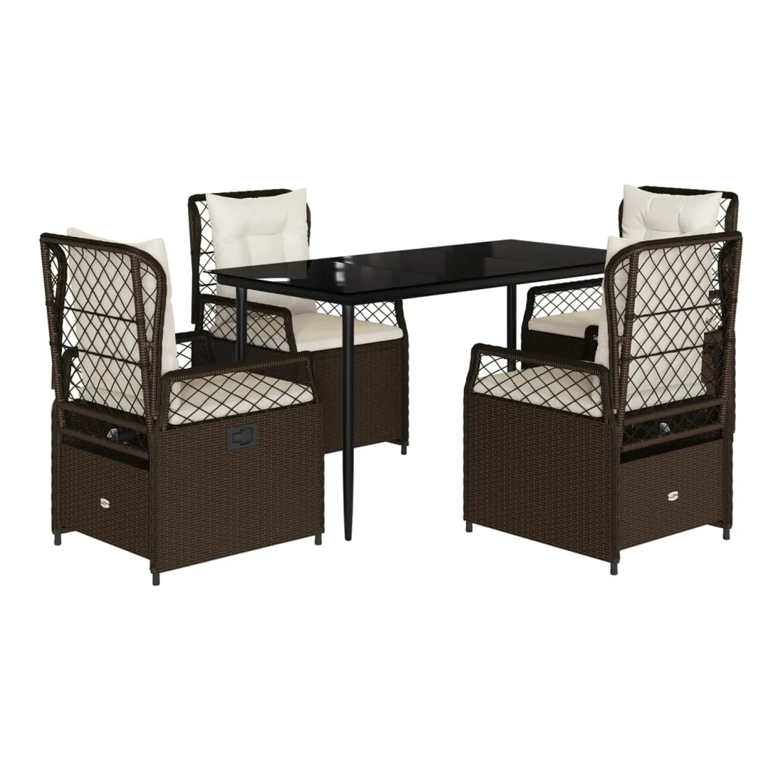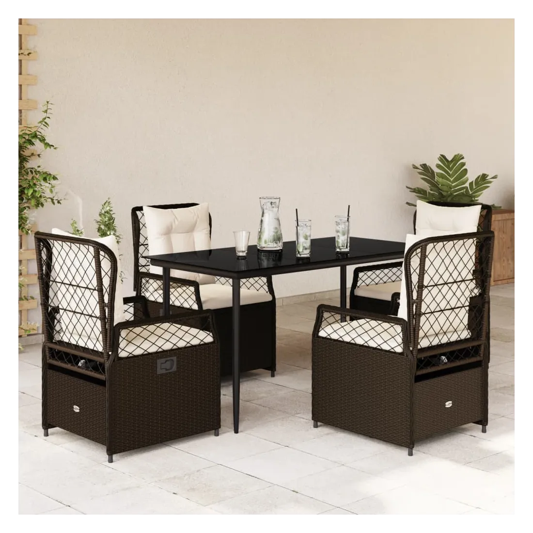 Cet ensemble de salle à manger de jardin est un excellent choix pour les repas en plein air ou pour vous détendre dans le jardin, dans l'arrière-cour ou sur la terrasse. Matériau durable : la résine tressée, également connue sous le nom de poly rotin, est un matériau synthétique solide et nécessitant peu d'entretien qui ressemble au rotin naturel. Il est léger, facile à nettoyer et couramment utilisé pour les meubles d'extérieur en raison de sa durabilité et de ses propriétés de résistance aux intempéries.Dossier réglable : ce siège de jardin est doté d'une poignée. Vous pouvez régler le dossier dans n'importe quelle position en tirant sur la poignée et le remettre rapidement dans sa position initiale.Expérience d'assise confortable : ce mobilier d'extérieur, doté de coussins épais, offre une expérience d'assise confortable.Housse amovible et lavable : le coussin de siège est doté d'une housse amovible pour un lavage et un entretien faciles.Dessus en verre : le dessus de la table d'extérieur est fabriqué en verre trempé solide et durable, ce qui le rend facile à nettoyer avec un chiffon humide et ajoute une touche d'élégance à votre espace extérieur. Bon à savoir :Pour que vos meubles d'extérieur restent beaux, nous vous recommandons de les protéger avec une housse imperméable.