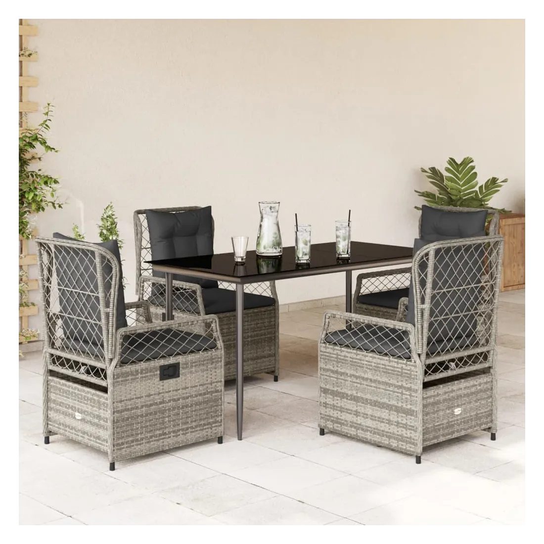 Ensemble à manger de jardin 5 pcs coussins gris résine tressée
