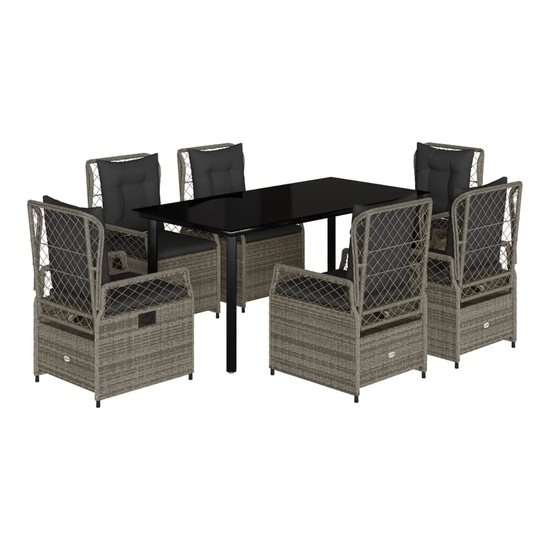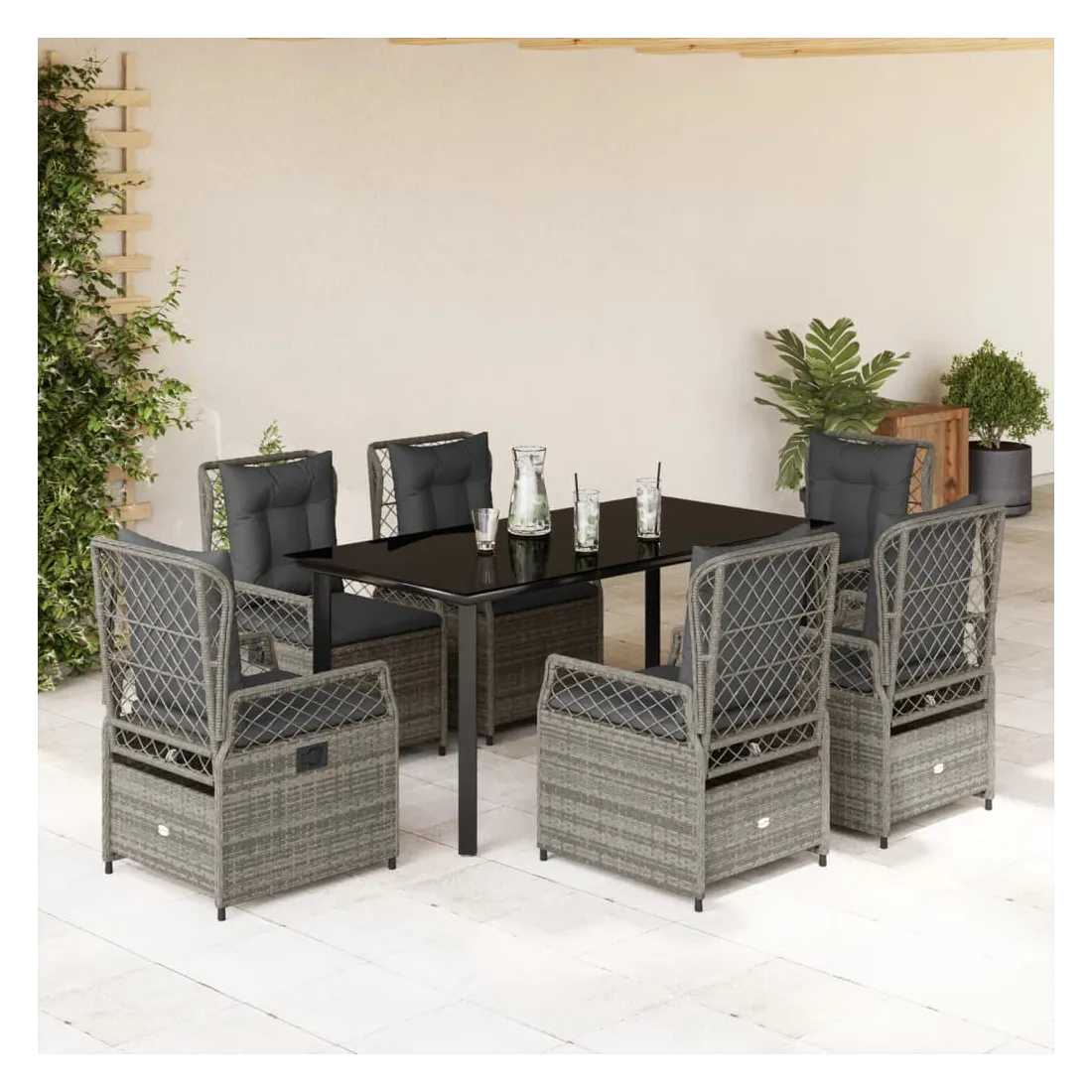 Cet ensemble de salle à manger de jardin est un excellent choix pour les repas en plein air ou pour vous détendre dans le jardin, dans l'arrière-cour ou sur la terrasse. Matériau durable : la résine tressée, également connue sous le nom de poly rotin, est un matériau synthétique solide et nécessitant peu d'entretien qui ressemble au rotin naturel. Il est léger, facile à nettoyer et couramment utilisé pour les meubles d'extérieur en raison de sa durabilité et de ses propriétés de résistance aux intempéries.Dossier réglable : ce siège de jardin est doté d'une poignée. Vous pouvez régler le dossier dans n'importe quelle position en tirant sur la poignée et le remettre rapidement dans sa position initiale.Expérience d'assise confortable : ce mobilier d'extérieur, doté de coussins épais, offre une expérience d'assise confortable.Housse amovible et lavable : le coussin de siège est doté d'une housse amovible pour un lavage et un entretien faciles.Dessus en verre : le dessus de la table d'extérieur est fabriqué en verre trempé solide et durable, ce qui le rend facile à nettoyer avec un chiffon humide et ajoute une touche d'élégance à votre espace extérieur. Bon à savoir :Pour que vos meubles d'extérieur restent beaux, nous vous recommandons de les protéger avec une housse imperméable.
