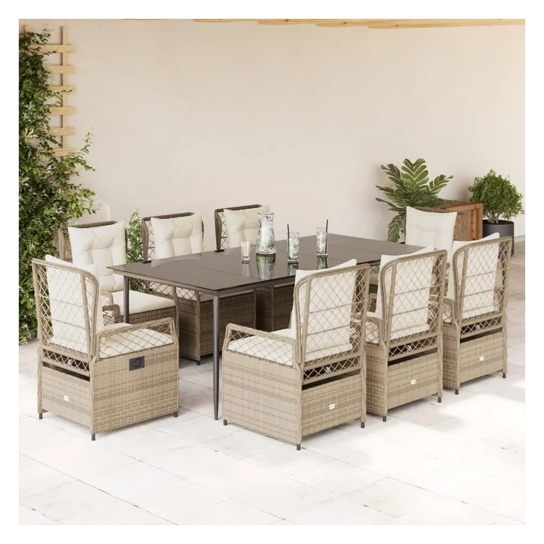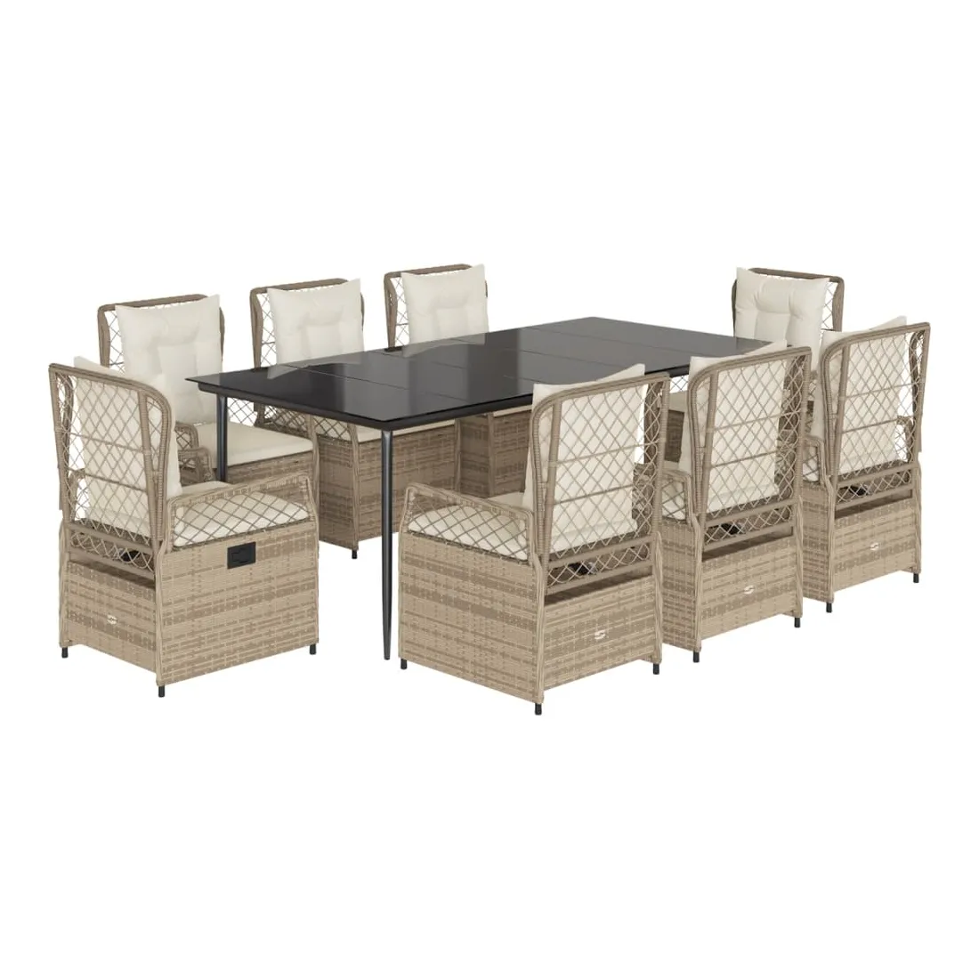 Ensemble à manger de jardin et coussins 9 pcs beige Poly rotin