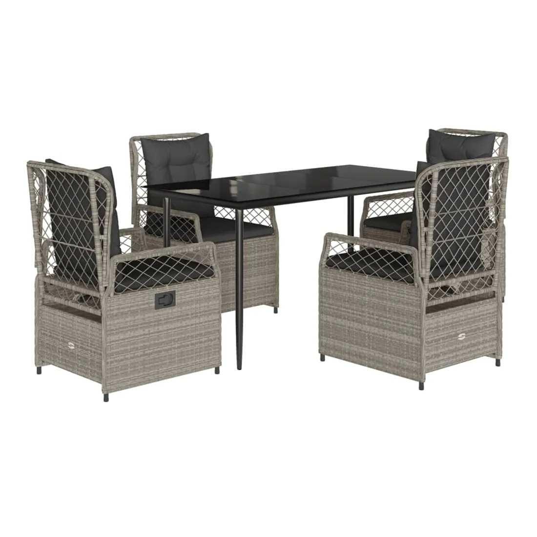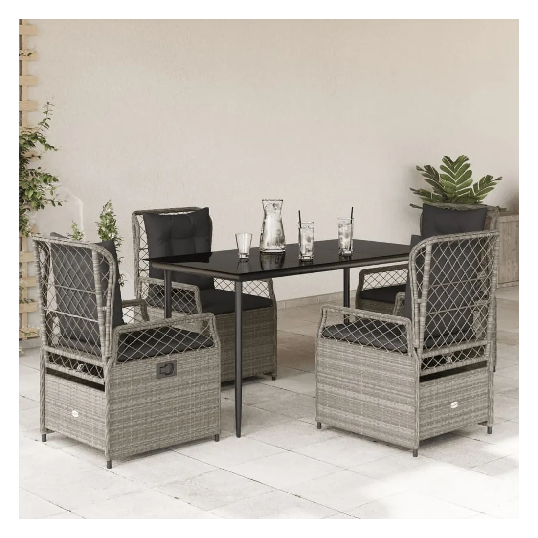 Cet ensemble de salle à manger de jardin est un excellent choix pour les repas en plein air ou pour vous détendre dans le jardin, dans l'arrière-cour ou sur la terrasse. Matériau durable : la résine tressée, également connue sous le nom de poly rotin, est un matériau synthétique solide et nécessitant peu d'entretien qui ressemble au rotin naturel. Il est léger, facile à nettoyer et couramment utilisé pour les meubles d'extérieur en raison de sa durabilité et de ses propriétés de résistance aux intempéries.Dossier réglable : ce siège de jardin est doté d'une poignée. Vous pouvez régler le dossier dans n'importe quelle position en tirant sur la poignée et le remettre rapidement dans sa position initiale.Expérience d'assise confortable : ce mobilier d'extérieur, doté de coussins épais, offre une expérience d'assise confortable.Housse amovible et lavable : le coussin de siège est doté d'une housse amovible pour un lavage et un entretien faciles.Dessus en verre : le dessus de la table d'extérieur est fabriqué en verre trempé solide et durable, ce qui le rend facile à nettoyer avec un chiffon humide et ajoute une touche d'élégance à votre espace extérieur. Bon à savoir :Pour que vos meubles d'extérieur restent beaux, nous vous recommandons de les protéger avec une housse imperméable.
