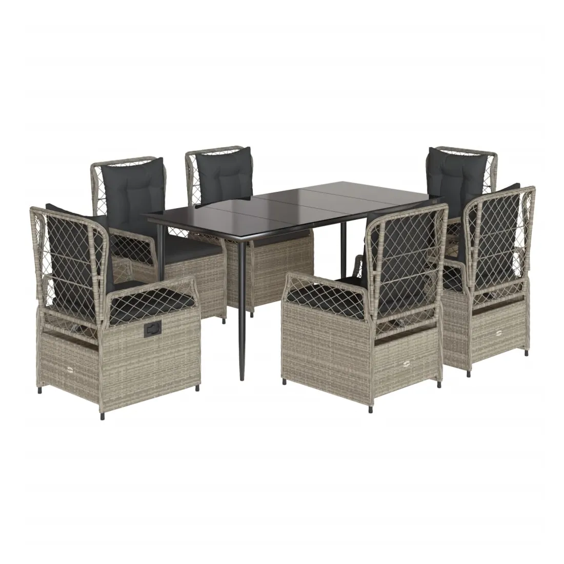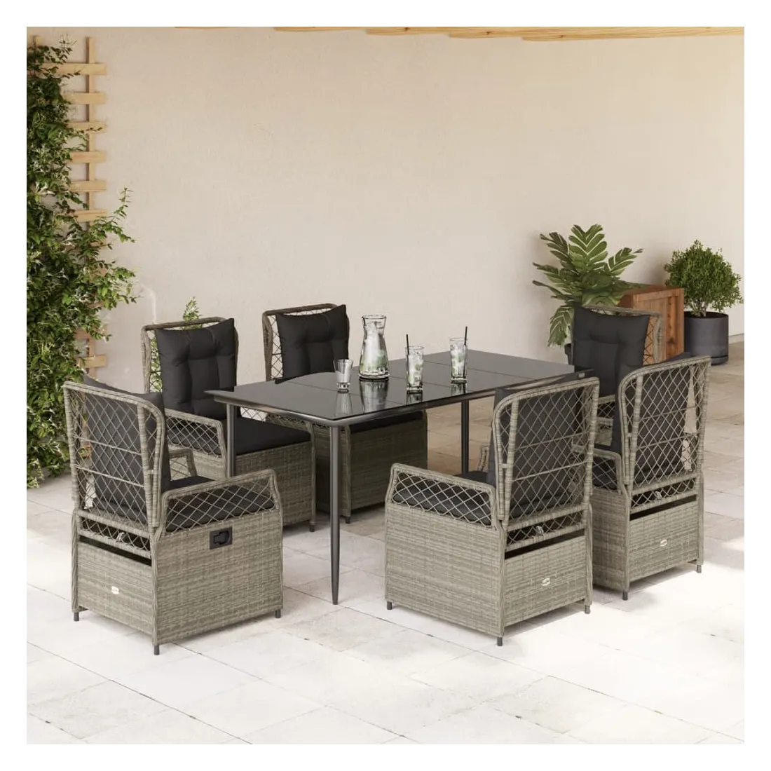 vidaXLCet ensemble de salle à manger de jardin est un excellent choix pour les repas en plein air ou pour vous détendre dans le jardin, dans l'arrière-cour ou sur la terrasse. Matériau durable : la résine tressée, également connue sous le nom de poly rotin, est un matériau synthétique solide et nécessitant peu d'entretien qui ressemble au rotin naturel. Il est léger, facile à nettoyer et couramment utilisé pour les meubles d'extérieur en raison de sa durabilité et de ses propriétés de résistance aux intempéries.Dossier réglable : ce siège de jardin est doté d'une poignée. Vous pouvez régler le dossier dans n'importe quelle position en tirant sur la poignée et le remettre rapidement dans sa position initiale.Expérience d'assise confortable : ce mobilier d'extérieur, doté de coussins épais, offre une expérience d'assise confortable.Housse amovible et lavable : le coussin de siège est doté d'une housse amovible pour un lavage et un entretien faciles.Dessus en verre : le dessus de la table d'extérieur est fabriqué en verre trempé solide et durable, ce qui le rend facile à nettoyer avec un chiffon humide et ajoute une touche d'élégance à votre espace extérieur. Bon à savoir :Pour que vos meubles d'extérieur restent beaux, nous vous recommandons de les protéger avec une housse imperméable.