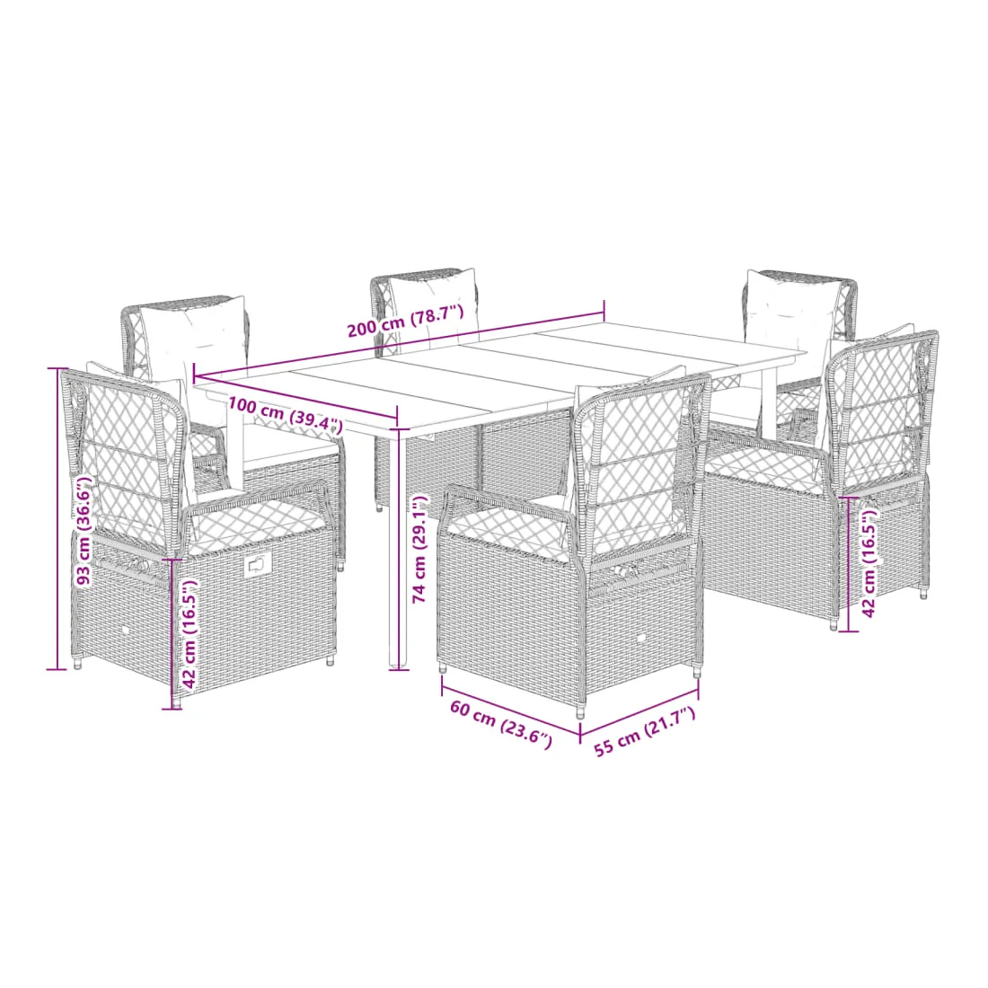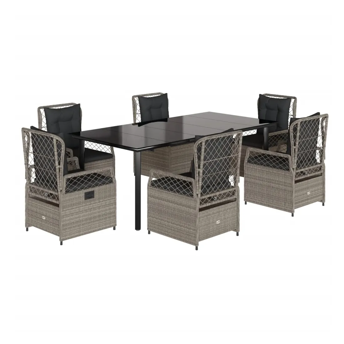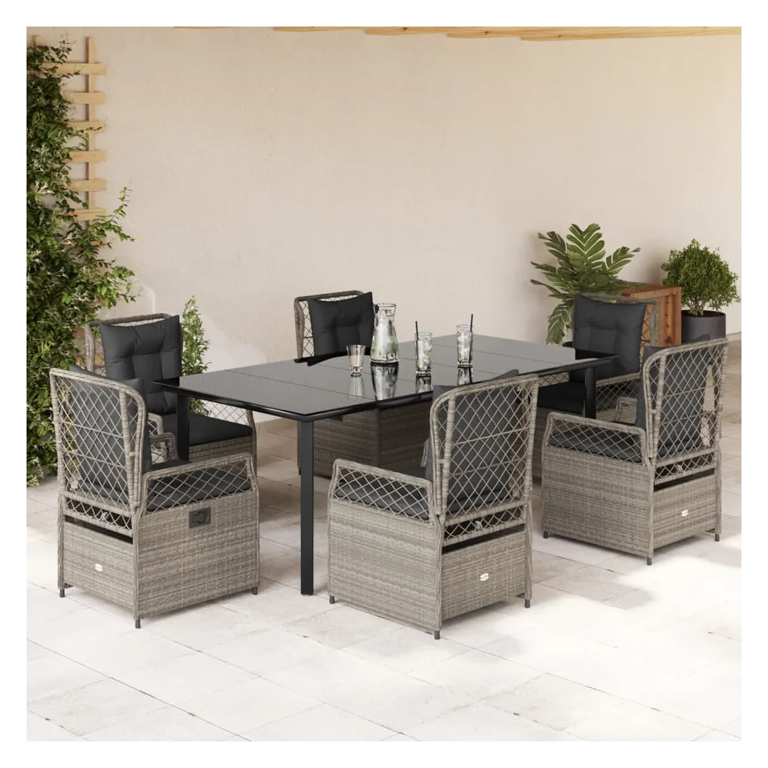 Ensemble à manger de jardin et coussins 7 pcs gris clair rotin