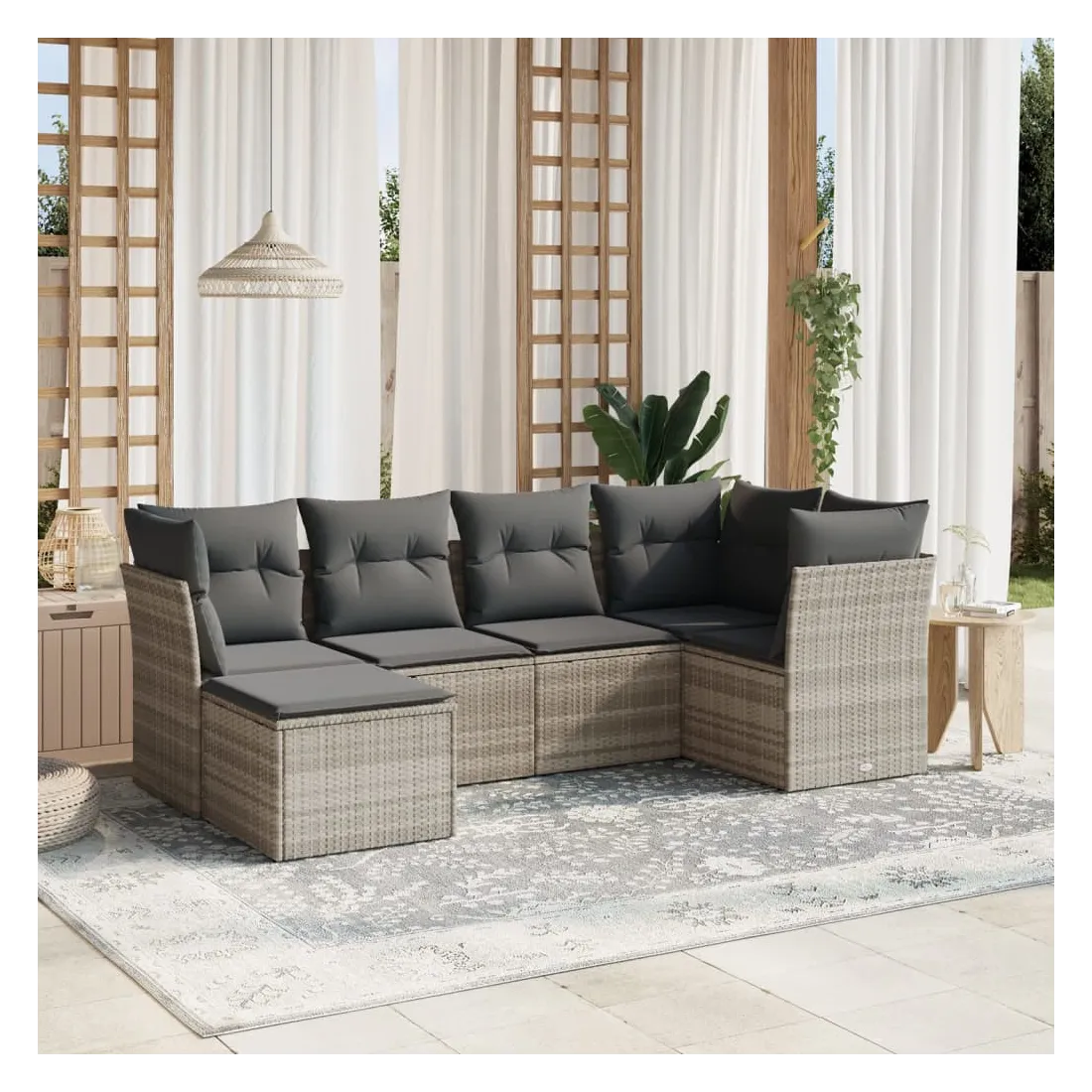 Cet ensemble de canapés de jardin est le complément parfait de votre arrière-cour, terrasse ou patio, offrant un espace confortable et accueillant pour discuter avec la famille et les amis ou simplement se détendre et profiter de l'extérieur. Matériau durable : la résine tressée, également connue sous le nom de poly rotin, est un matériau synthétique solide et nécessitant peu d'entretien qui ressemble au rotin naturel. Il est léger, facile à nettoyer et couramment utilisé pour les meubles d'extérieur en raison de sa durabilité et de ses propriétés de résistance aux intempéries.Expérience d'assise confortable : ce mobilier d'extérieur, doté de coussins épais, offre une expérience d'assise confortable.Housse amovible et lavable : ces coussins de siège sont dotés de housses amovibles pour un lavage et un entretien faciles.Cadre robuste et stable : le cadre en acier enduit de poudre assure la solidité et la stabilité du meuble de jardin pour une utilisation quotidienne à l'extérieur.Conception modulaire : cet ensemble de meubles d'extérieur a une conception modulaire, ce qui le rend complètement flexible et facile à déplacer, afin que vous puissiez créer un agencement de meubles d'extérieur personnalisé. Bon à savoir :Pour que vos meubles d'extérieur restent beaux, nous vous recommandons de les protéger avec une housse imperméable.