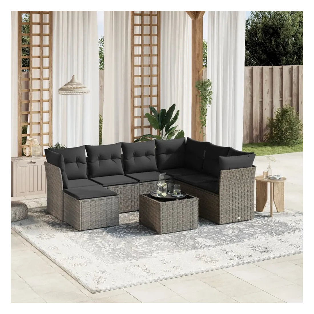 Cet ensemble de canapés de jardin est le complément parfait de votre arrière-cour, terrasse ou patio, offrant un espace confortable et accueillant pour discuter avec la famille et les amis ou simplement se détendre et profiter de l'extérieur. Matériau durable : la résine tressée, également connue sous le nom de poly rotin, est un matériau synthétique solide et nécessitant peu d'entretien qui ressemble au rotin naturel. Il est léger, facile à nettoyer et couramment utilisé pour les meubles d'extérieur en raison de sa durabilité et de ses propriétés de résistance aux intempéries.Dessus en verre : le dessus de la table d'extérieur est fabriqué en verre trempé solide et durable, ce qui le rend facile à nettoyer avec un chiffon humide et ajoute une touche d'élégance à votre espace extérieur.Housse amovible et lavable : ces coussins de siège sont dotés de housses amovibles pour un lavage et un entretien faciles.Cadre robuste et stable : le cadre en acier enduit de poudre assure la solidité et la stabilité du meuble de jardin pour une utilisation quotidienne à l'extérieur.Conception modulaire : cet ensemble de meubles d'extérieur a une conception modulaire, ce qui le rend complètement flexible et facile à déplacer, afin que vous puissiez créer un agencement de meubles d'extérieur personnalisé. Bon à savoir :Pour que vos meubles d'extérieur restent beaux, nous vous recommandons de les protéger avec une housse imperméable.