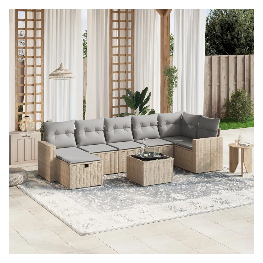 Cet ensemble de canapés de jardin est le complément parfait de votre arrière-cour, terrasse ou patio, offrant un espace confortable et accueillant pour discuter avec la famille et les amis ou simplement se détendre et profiter de l'extérieur. Matériau durable : la résine tressée, également connue sous le nom de poly rotin, est un matériau synthétique solide et nécessitant peu d'entretien qui ressemble au rotin naturel. Il est léger, facile à nettoyer et couramment utilisé pour les meubles d'extérieur en raison de sa durabilité et de ses propriétés de résistance aux intempéries.Dessus en verre : le dessus de la table d'extérieur est fabriqué en verre trempé solide et durable, ce qui le rend facile à nettoyer avec un chiffon humide et ajoute une touche d'élégance à votre espace extérieur.Housse amovible et lavable : ces coussins de siège sont dotés de housses amovibles pour un lavage et un entretien faciles.Cadre robuste et stable : le cadre en acier enduit de poudre assure la solidité et la stabilité du meuble de jardin pour une utilisation quotidienne à l'extérieur.Conception modulaire : cet ensemble de meubles d'extérieur a une conception modulaire, ce qui le rend complètement flexible et facile à déplacer, afin que vous puissiez créer un agencement de meubles d'extérieur personnalisé. Bon à savoir :Pour que vos meubles d'extérieur restent beaux, nous vous recommandons de les protéger avec une housse imperméable.