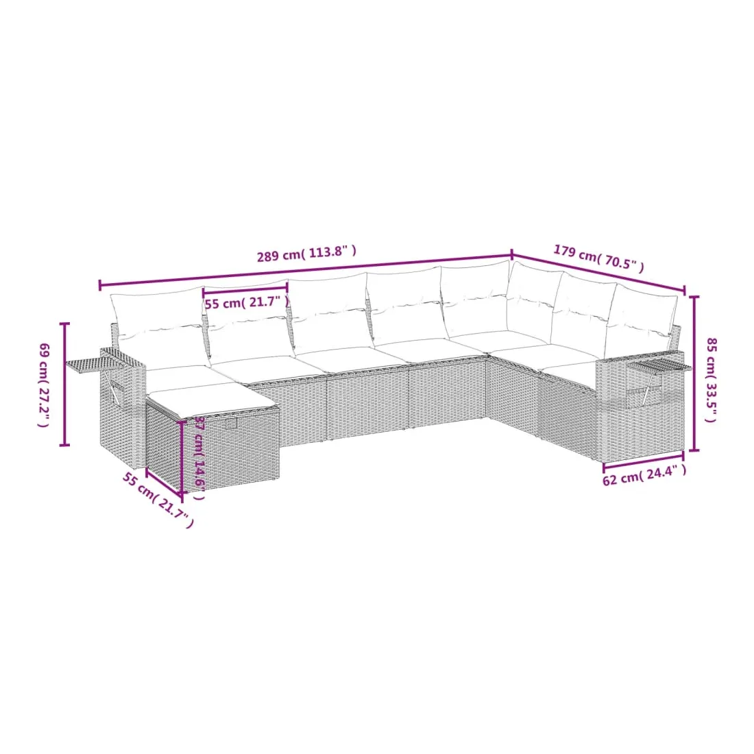 Cet ensemble de canapés de jardin est le complément parfait de votre arrière-cour, terrasse ou patio, offrant un espace confortable et accueillant pour discuter avec la famille et les amis ou simplement se détendre et profiter de l'extérieur. Matériau durable : la résine tressée, également connue sous le nom de poly rotin, est un matériau synthétique solide et nécessitant peu d'entretien qui ressemble au rotin naturel. Il est léger, facile à nettoyer et couramment utilisé pour les meubles d'extérieur en raison de sa durabilité et de ses propriétés de résistance aux intempéries.Expérience d'assise confortable : ce mobilier d'extérieur, doté de coussins épais, offre une expérience d'assise confortable.Housse amovible et lavable : ces coussins de siège sont dotés de housses amovibles pour un lavage et un entretien faciles.Cadre robuste et stable : le cadre en acier enduit de poudre assure la solidité et la stabilité du meuble de jardin pour une utilisation quotidienne à l'extérieur.Conception modulaire : cet ensemble de meubles d'extérieur a une conception modulaire, ce qui le rend complètement flexible et facile à déplacer, afin que vous puissiez créer un agencement de meubles d'extérieur personnalisé. Bon à savoir :Pour que vos meubles d'extérieur restent beaux, nous vous recommandons de les protéger avec une housse imperméable.