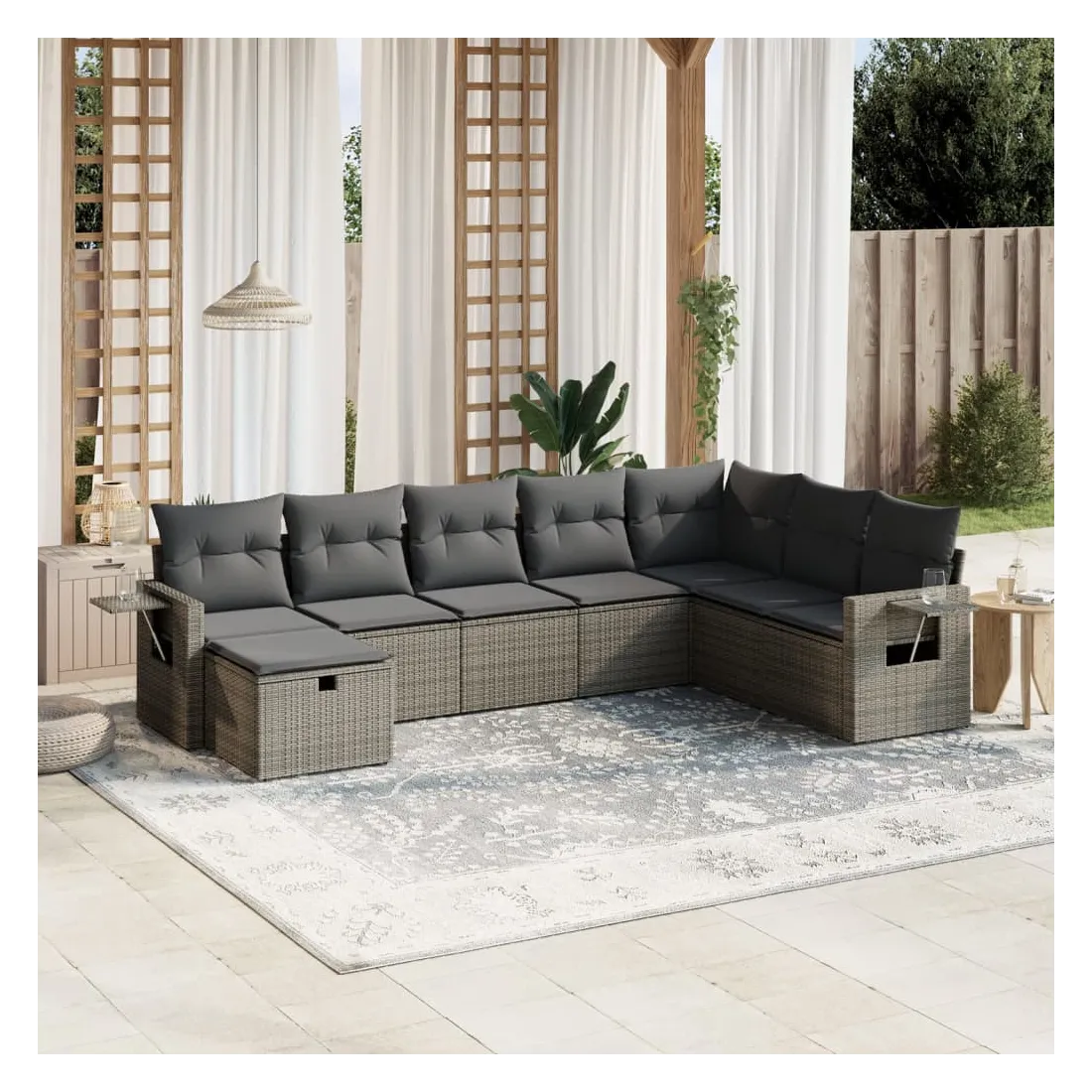 Cet ensemble de canapés de jardin est le complément parfait de votre arrière-cour, terrasse ou patio, offrant un espace confortable et accueillant pour discuter avec la famille et les amis ou simplement se détendre et profiter de l'extérieur. Matériau durable : la résine tressée, également connue sous le nom de poly rotin, est un matériau synthétique solide et nécessitant peu d'entretien qui ressemble au rotin naturel. Il est léger, facile à nettoyer et couramment utilisé pour les meubles d'extérieur en raison de sa durabilité et de ses propriétés de résistance aux intempéries.Expérience d'assise confortable : ce mobilier d'extérieur, doté de coussins épais, offre une expérience d'assise confortable.Housse amovible et lavable : ces coussins de siège sont dotés de housses amovibles pour un lavage et un entretien faciles.Cadre robuste et stable : le cadre en acier enduit de poudre assure la solidité et la stabilité du meuble de jardin pour une utilisation quotidienne à l'extérieur.Conception modulaire : cet ensemble de meubles d'extérieur a une conception modulaire, ce qui le rend complètement flexible et facile à déplacer, afin que vous puissiez créer un agencement de meubles d'extérieur personnalisé. Bon à savoir :Pour que vos meubles d'extérieur restent beaux, nous vous recommandons de les protéger avec une housse imperméable.