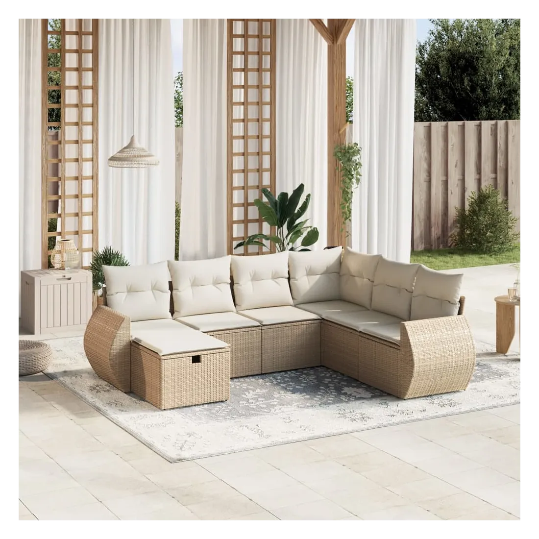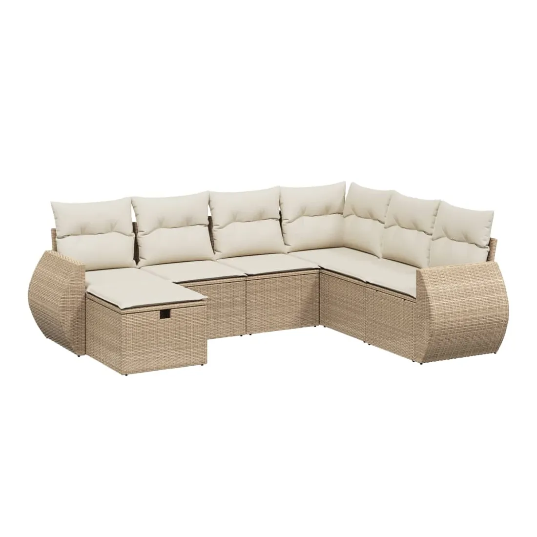 Salon de jardin avec coussins 7 pcs beige résine tressée