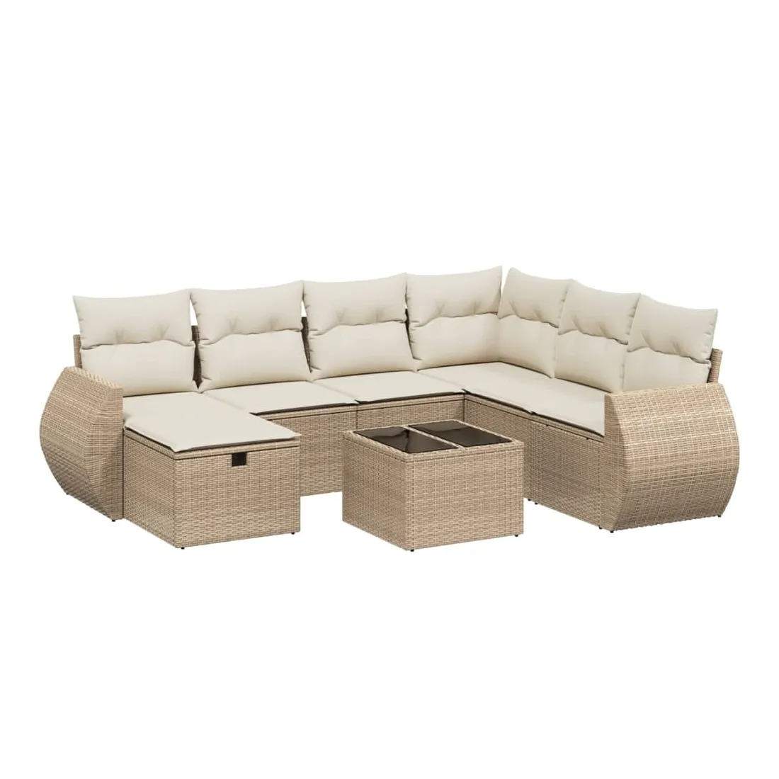 Salon de jardin avec coussins 8 pcs beige résine tressée