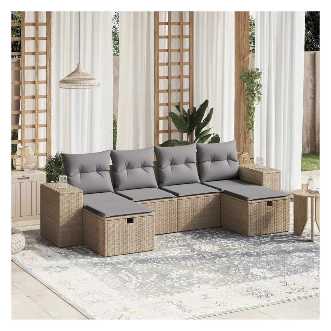 Cet ensemble de canapés de jardin est le complément parfait de votre arrière-cour, terrasse ou patio, offrant un espace confortable et accueillant pour discuter avec la famille et les amis ou simplement se détendre et profiter de l'extérieur. Matériau durable : la résine tressée, également connue sous le nom de poly rotin, est un matériau synthétique solide et nécessitant peu d'entretien qui ressemble au rotin naturel. Il est léger, facile à nettoyer et couramment utilisé pour les meubles d'extérieur en raison de sa durabilité et de ses propriétés de résistance aux intempéries.Expérience d'assise confortable : ce mobilier d'extérieur, doté de coussins épais, offre une expérience d'assise confortable.Housse amovible et lavable : ces coussins de siège sont dotés de housses amovibles pour un lavage et un entretien faciles.Cadre robuste et stable : le cadre en acier enduit de poudre assure la solidité et la stabilité du meuble de jardin pour une utilisation quotidienne à l'extérieur.Conception modulaire : cet ensemble de meubles d'extérieur a une conception modulaire, ce qui le rend complètement flexible et facile à déplacer, afin que vous puissiez créer un agencement de meubles d'extérieur personnalisé. Bon à savoir :Pour que vos meubles d'extérieur restent beaux, nous vous recommandons de les protéger avec une housse imperméable.