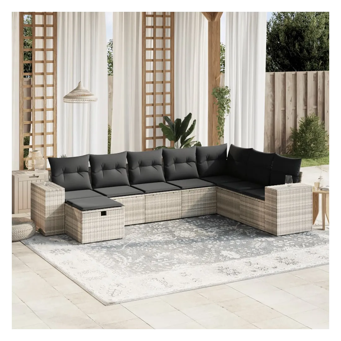 Cet ensemble de canapés de jardin est le complément parfait de votre arrière-cour, terrasse ou patio, offrant un espace confortable et accueillant pour discuter avec la famille et les amis ou simplement se détendre et profiter de l'extérieur. Matériau durable : la résine tressée, également connue sous le nom de poly rotin, est un matériau synthétique solide et nécessitant peu d'entretien qui ressemble au rotin naturel. Il est léger, facile à nettoyer et couramment utilisé pour les meubles d'extérieur en raison de sa durabilité et de ses propriétés de résistance aux intempéries.Expérience d'assise confortable : ce mobilier d'extérieur, doté de coussins épais, offre une expérience d'assise confortable.Housse amovible et lavable : ces coussins de siège sont dotés de housses amovibles pour un lavage et un entretien faciles.Cadre robuste et stable : le cadre en acier enduit de poudre assure la solidité et la stabilité du meuble de jardin pour une utilisation quotidienne à l'extérieur.Conception modulaire : cet ensemble de meubles d'extérieur a une conception modulaire, ce qui le rend complètement flexible et facile à déplacer, afin que vous puissiez créer un agencement de meubles d'extérieur personnalisé. Bon à savoir :Pour que vos meubles d'extérieur restent beaux, nous vous recommandons de les protéger avec une housse imperméable.