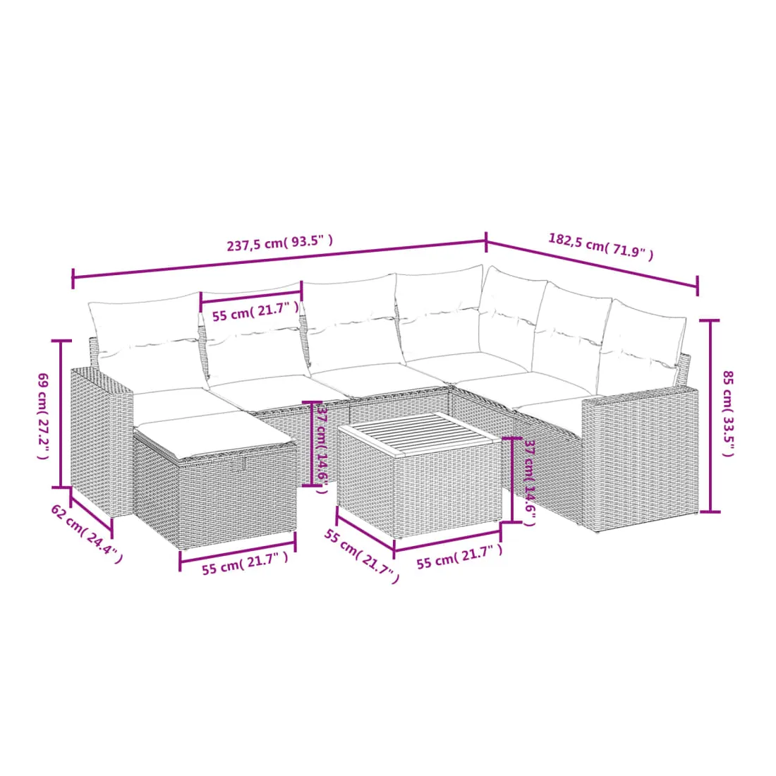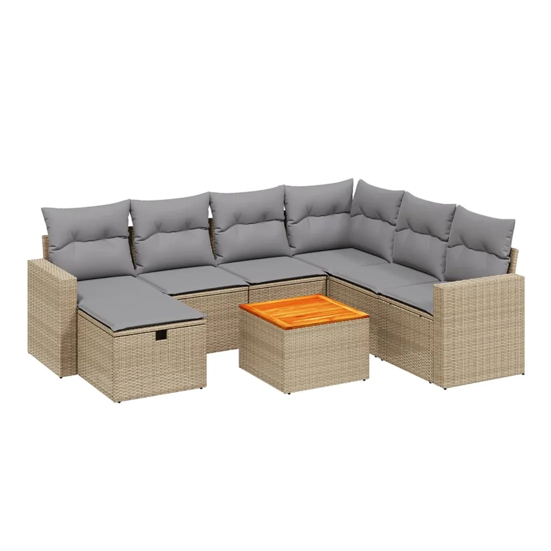 Salon de jardin avec coussins 8pcs mélange beige résine tressée