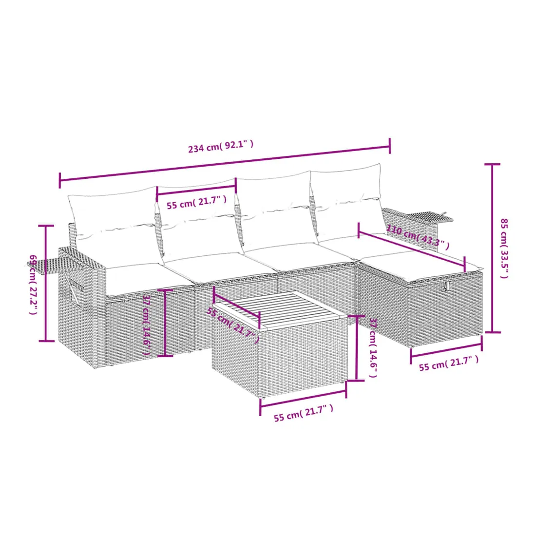 - Dimensions : 55 x 55 x 37 cm (L x l x H)
