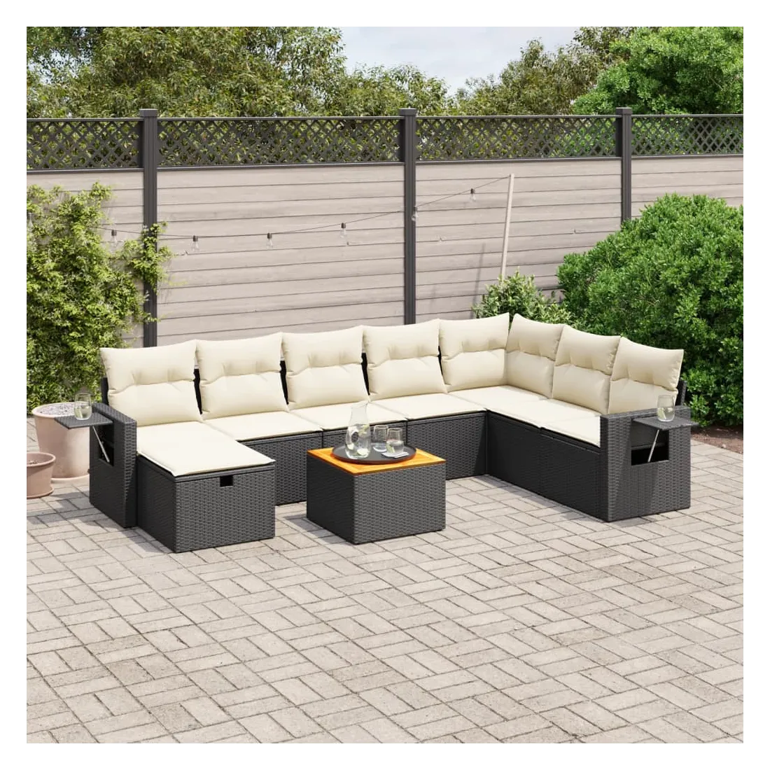 Cet ensemble de canapés de jardin est le complément parfait de votre arrière-cour, terrasse ou patio, offrant un espace confortable et accueillant pour discuter avec la famille et les amis ou simplement se détendre et profiter de l'extérieur. Matériau durable : la résine tressée, également connue sous le nom de poly rotin, est un matériau synthétique solide et nécessitant peu d'entretien qui ressemble au rotin naturel. Il est léger, facile à nettoyer et couramment utilisé pour les meubles d'extérieur en raison de sa durabilité et de ses propriétés de résistance aux intempéries.Dessus stable et facile à nettoyer : cette table de jardin a un dessus en bois d'acacia robuste, durable et facile à nettoyer avec un chiffon humide.Housse amovible et lavable : ces coussins de siège sont dotés de housses amovibles pour un lavage et un entretien faciles.Cadre robuste et stable : le cadre en acier enduit de poudre assure la solidité et la stabilité du meuble de jardin pour une utilisation quotidienne à l'extérieur.Conception modulaire : cet ensemble de meubles d'extérieur a une conception modulaire, ce qui le rend complètement flexible et facile à déplacer, afin que vous puissiez créer un agencement de meubles d'extérieur personnalisé. Bon à savoir :Pour que vos meubles d'extérieur restent beaux, nous vous recommandons de les protéger avec une housse imperméable.
