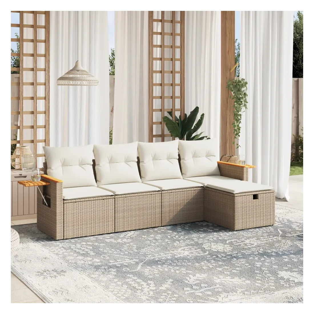 Cet ensemble de canapés de jardin est le complément parfait de votre arrière-cour, terrasse ou patio, offrant un espace confortable et accueillant pour discuter avec la famille et les amis ou simplement se détendre et profiter de l'extérieur. Matériau durable : la résine tressée, également connue sous le nom de poly rotin, est un matériau synthétique solide et nécessitant peu d'entretien qui ressemble au rotin naturel. Il est léger, facile à nettoyer et couramment utilisé pour les meubles d'extérieur en raison de sa durabilité et de ses propriétés de résistance aux intempéries.Expérience d'assise confortable : ce mobilier d'extérieur, doté de coussins épais, offre une expérience d'assise confortable.Housse amovible et lavable : ces coussins de siège sont dotés de housses amovibles pour un lavage et un entretien faciles.Cadre robuste et stable : le cadre en acier enduit de poudre assure la solidité et la stabilité du meuble de jardin pour une utilisation quotidienne à l'extérieur.Conception modulaire : cet ensemble de meubles d'extérieur a une conception modulaire, ce qui le rend complètement flexible et facile à déplacer, afin que vous puissiez créer un agencement de meubles d'extérieur personnalisé. Bon à savoir :Pour que vos meubles d'extérieur restent beaux, nous vous recommandons de les protéger avec une housse imperméable.