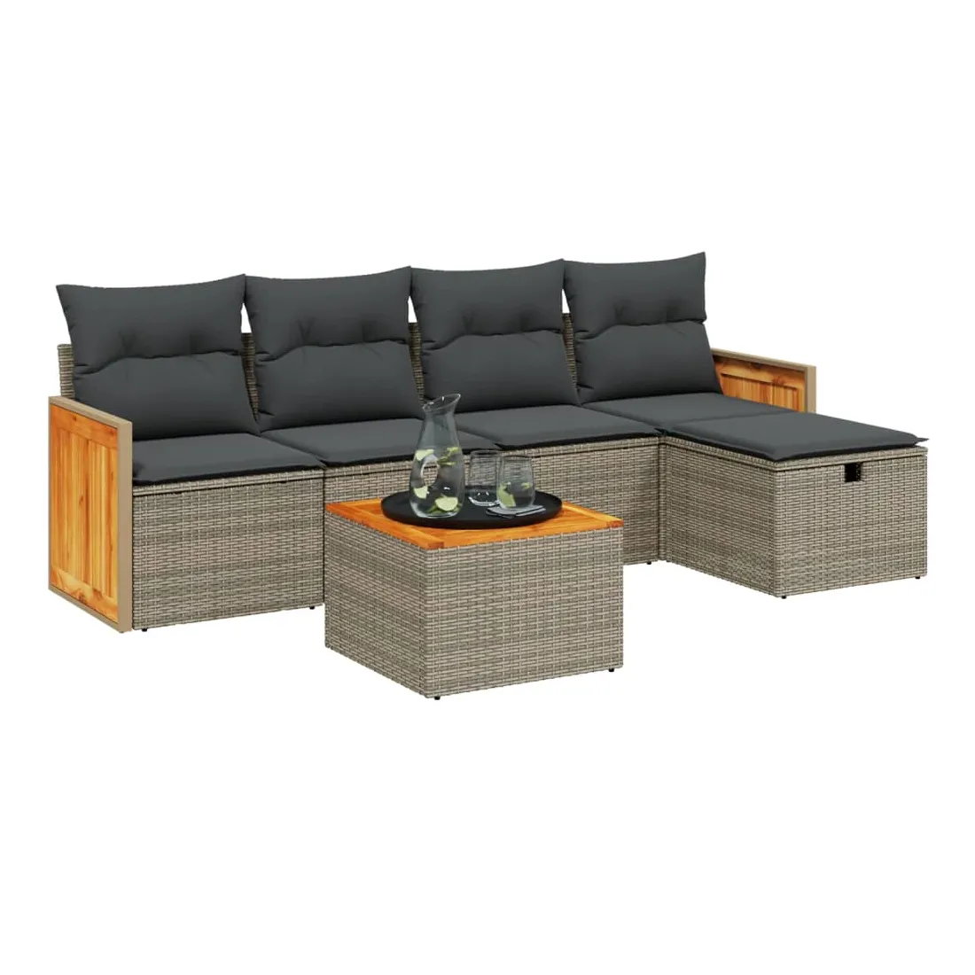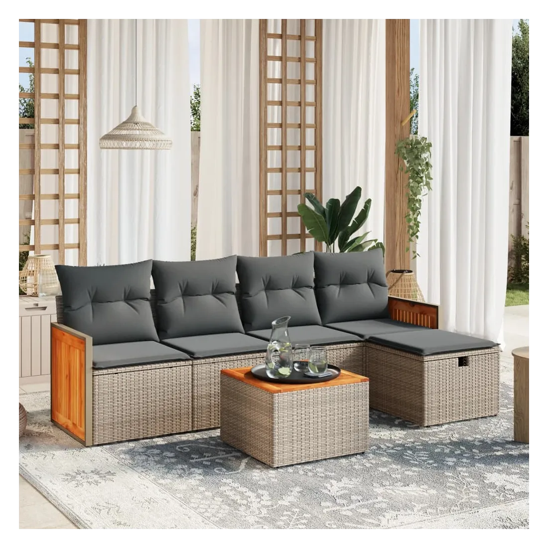Cet ensemble de canapés de jardin est le complément parfait de votre arrière-cour, terrasse ou patio, offrant un espace confortable et accueillant pour discuter avec la famille et les amis ou simplement se détendre et profiter de l'extérieur. Matériau durable : la résine tressée, également connue sous le nom de poly rotin, est un matériau synthétique solide et nécessitant peu d'entretien qui ressemble au rotin naturel. Il est léger, facile à nettoyer et couramment utilisé pour les meubles d'extérieur en raison de sa durabilité et de ses propriétés de résistance aux intempéries.Dessus stable et facile à nettoyer : cette table de jardin a un dessus en bois d'acacia robuste, durable et facile à nettoyer avec un chiffon humide.Housse amovible et lavable : ces coussins de siège sont dotés de housses amovibles pour un lavage et un entretien faciles.Cadre robuste et stable : le cadre en acier enduit de poudre assure la solidité et la stabilité du meuble de jardin pour une utilisation quotidienne à l'extérieur.Conception modulaire : cet ensemble de meubles d'extérieur a une conception modulaire, ce qui le rend complètement flexible et facile à déplacer, afin que vous puissiez créer un agencement de meubles d'extérieur personnalisé. Bon à savoir :Pour que vos meubles d'extérieur restent beaux, nous vous recommandons de les protéger avec une housse imperméable.