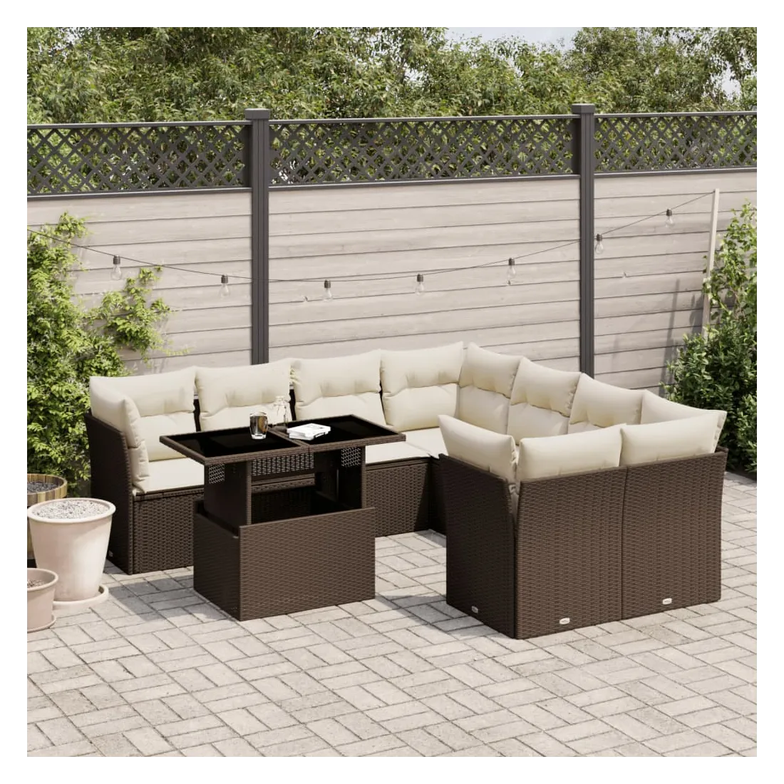 Cet ensemble de canapés de jardin est le complément parfait de votre arrière-cour, terrasse ou patio, offrant un espace confortable et accueillant pour discuter avec la famille et les amis ou simplement se détendre et profiter de l'extérieur. Matériau durable : la résine tressée, également connue sous le nom de poly rotin, est un matériau synthétique solide et nécessitant peu d'entretien qui ressemble au rotin naturel. Il est léger, facile à nettoyer et couramment utilisé pour les meubles d'extérieur en raison de sa durabilité et de ses propriétés de résistance aux intempéries.Dessus de table réglable : le dessus de table peut être soulevé pour rendre la table plus haute, ce qui transforme la table d'extérieur d'une table basse à une table de salle à manger. Elle est parfaite pour recevoir des invités ou prendre des repas à l'extérieur.Expérience d'assise confortable : ce mobilier d'extérieur, doté de coussins épais, offre une expérience d'assise confortable.Housse amovible et lavable : ces coussins de siège sont dotés de housses amovibles pour un lavage et un entretien faciles.Conception modulaire : cet ensemble de meubles d'extérieur a une conception modulaire, ce qui le rend complètement flexible et facile à déplacer, afin que vous puissiez créer un agencement de meubles d'extérieur personnalisé. Bon à savoir :Pour que vos meubles d'extérieur restent beaux, nous vous recommandons de les protéger avec une housse imperméable.